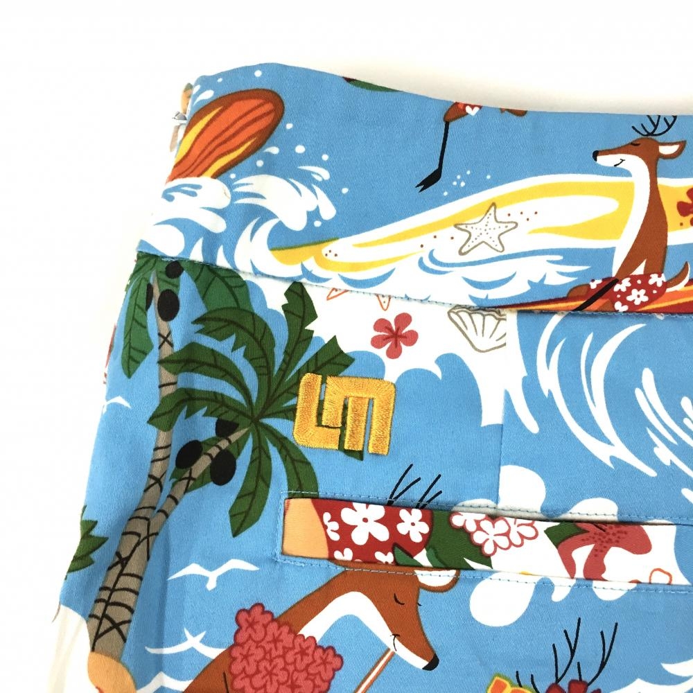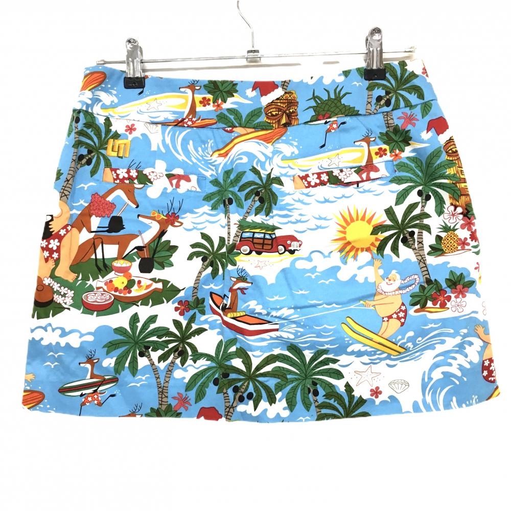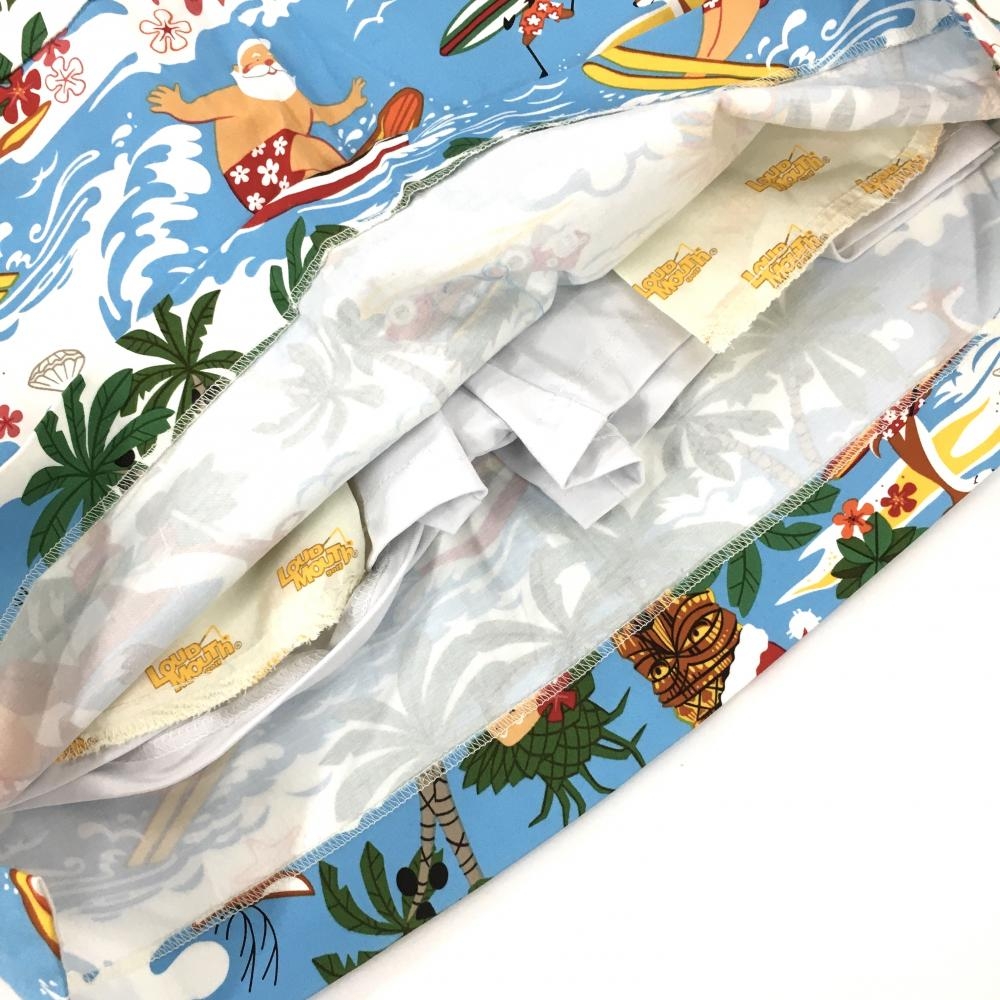 【超美品】ラウドマウス スカート ライトブルー×マルチカラー サーフィンサンタ柄 ヤシの木 レディース US-6 ゴルフウェア LOUDMOUTH