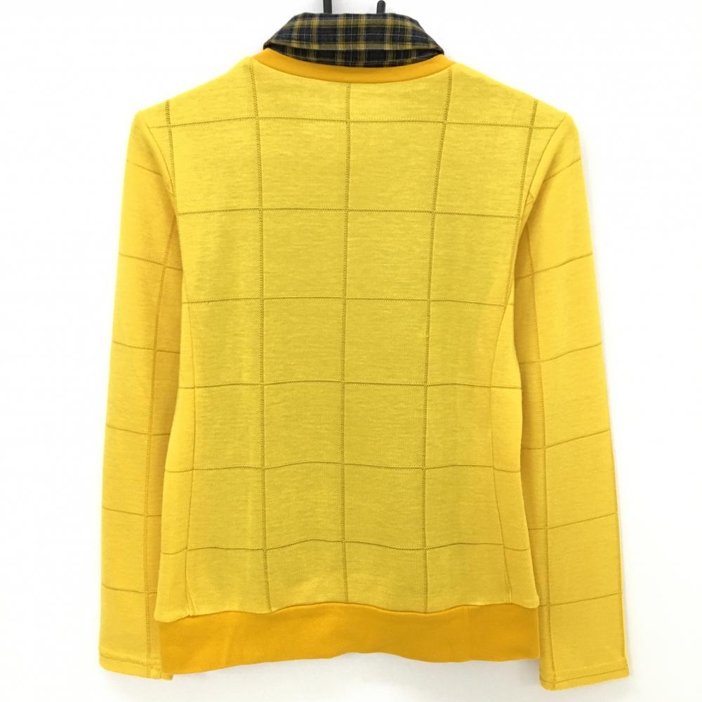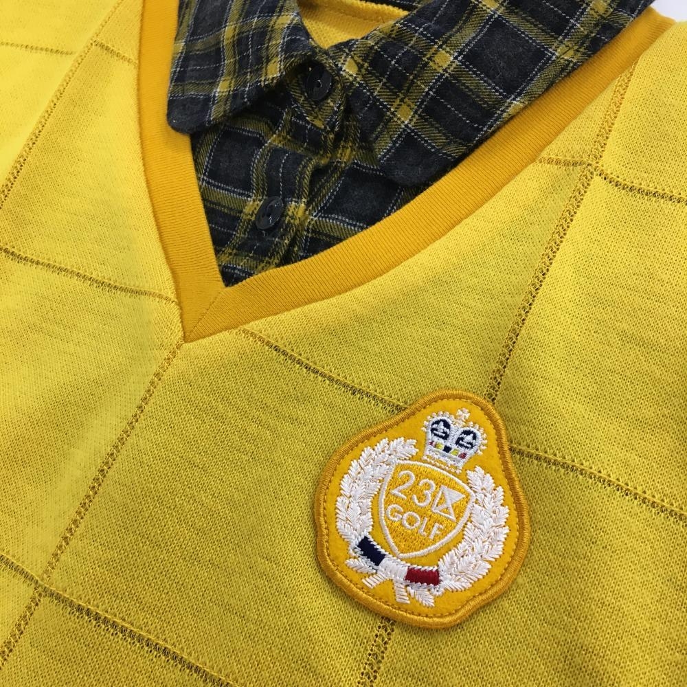 【美品】23区ゴルフ 襟付きセーター イエロー×ダークグレー 重ね着風 格子柄 ニット ウール混 レディース 0(S) ゴルフウェア 23区