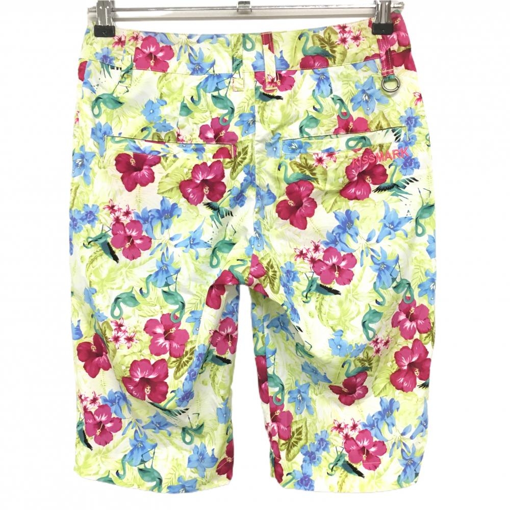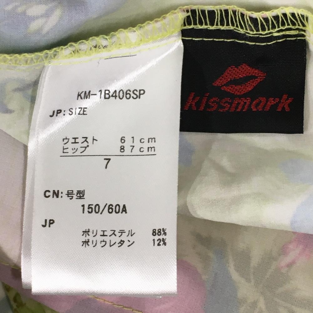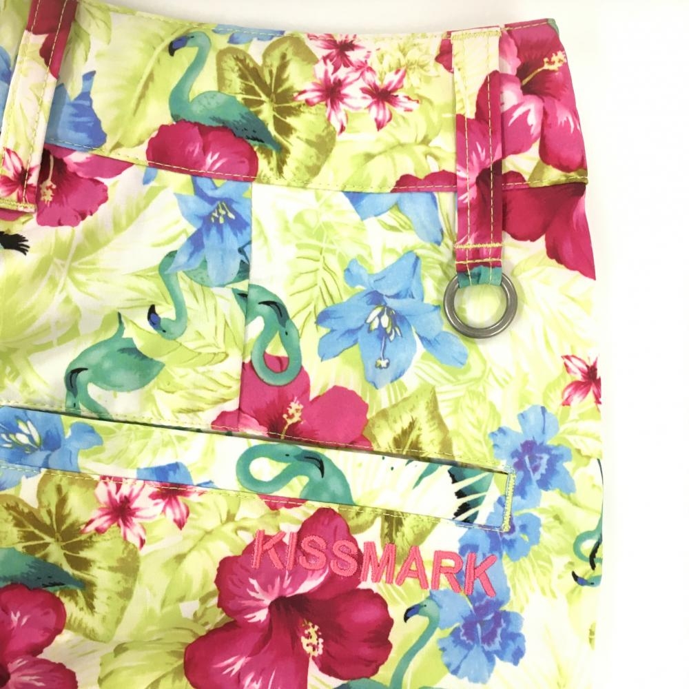 【超美品】キスマーク ショートパンツ ライトグリーン×ボルドー 花柄 リーフ柄 レディース 7 ゴルフウェア Kissmark