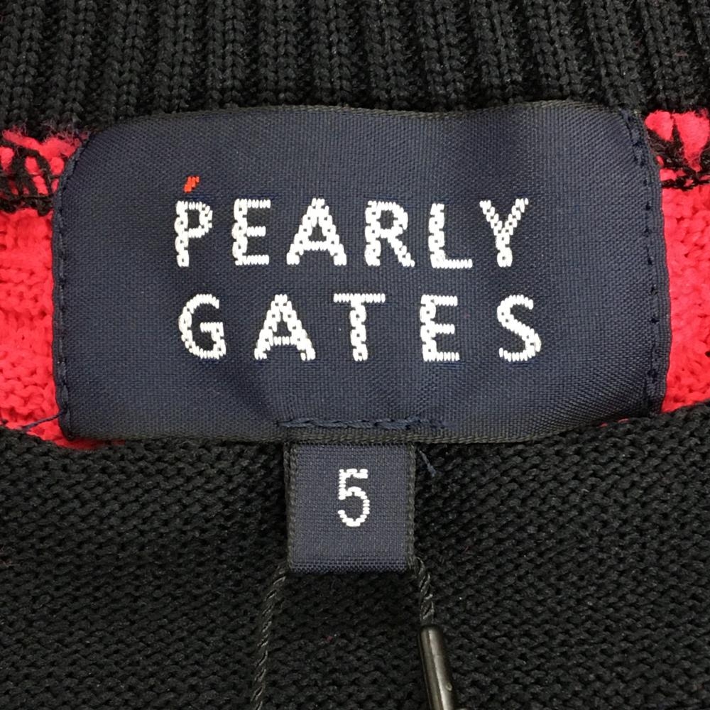 【新品】パーリーゲイツ ニットベスト ピンク×ダークネイビー 太ボーダー ブロックチェック編み メンズ 5(L) ゴルフウェア PEARLY GATES