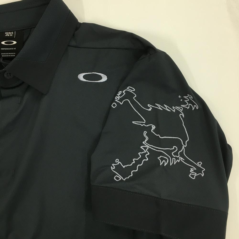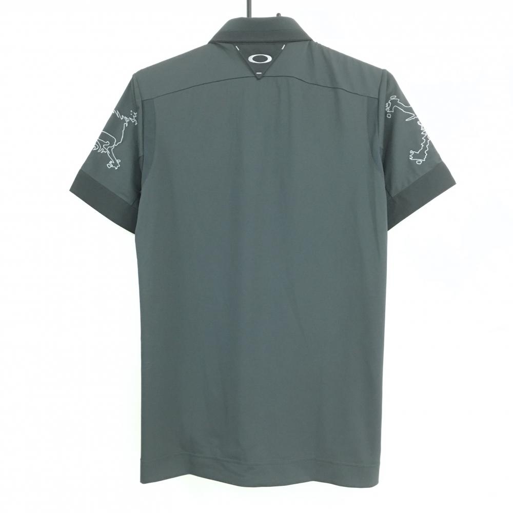 オークリー 半袖ポロシャツ グレー 袖ロゴ刺しゅう スナップボタン メンズ M ゴルフウェア Oakley