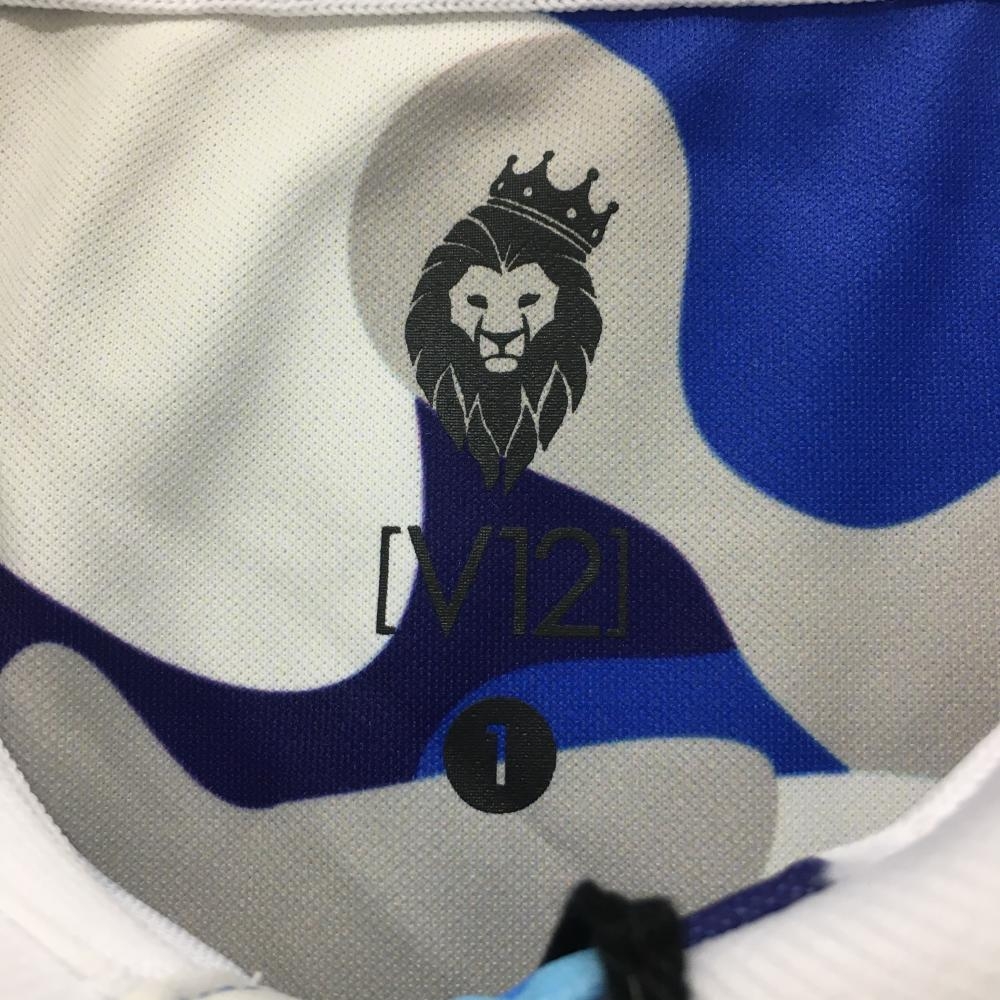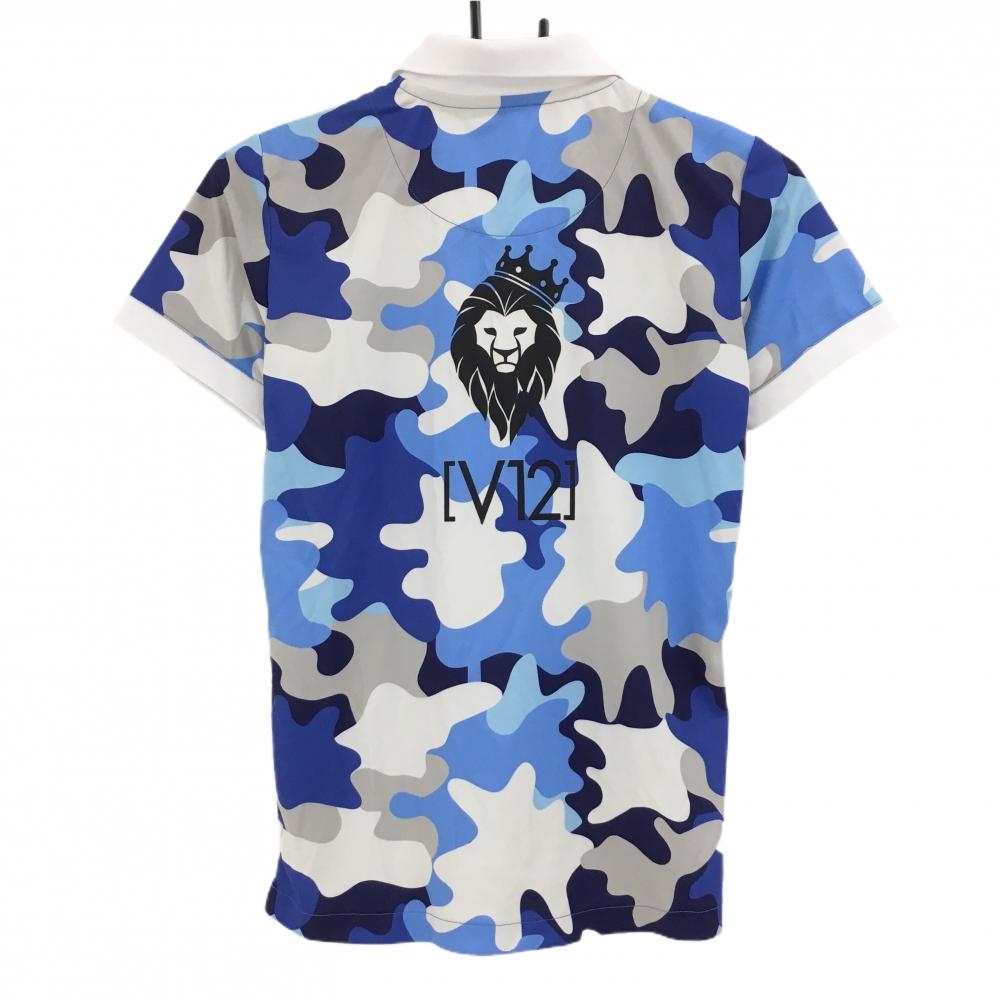 【新品】V12 半袖ポロシャツ ブルー×ライトグレー カモフラ 迷彩 レディース 1(M) ゴルフウェア V12