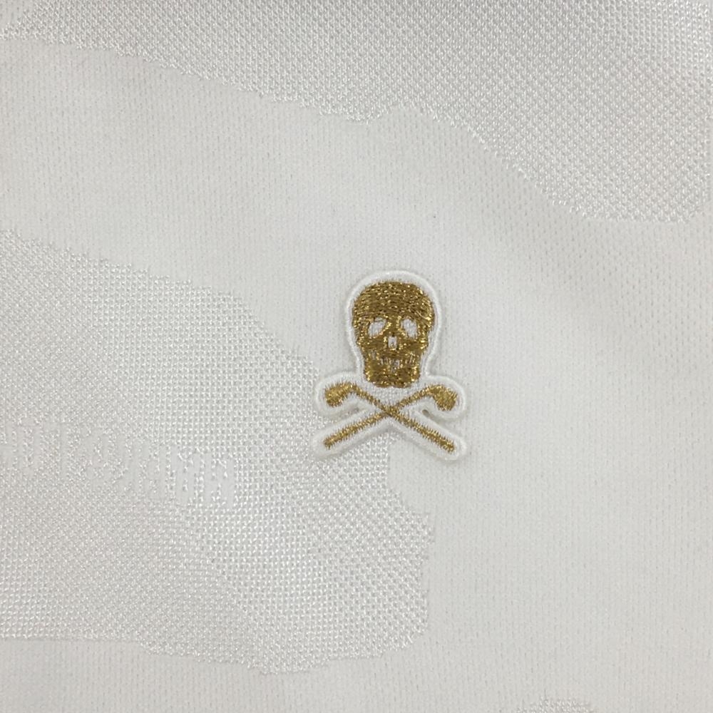 マークアンドロナ 半袖ポロシャツ 白 迷彩・スカル総柄地模様 レディース 38(M) ゴルフウェア MARK&LONA