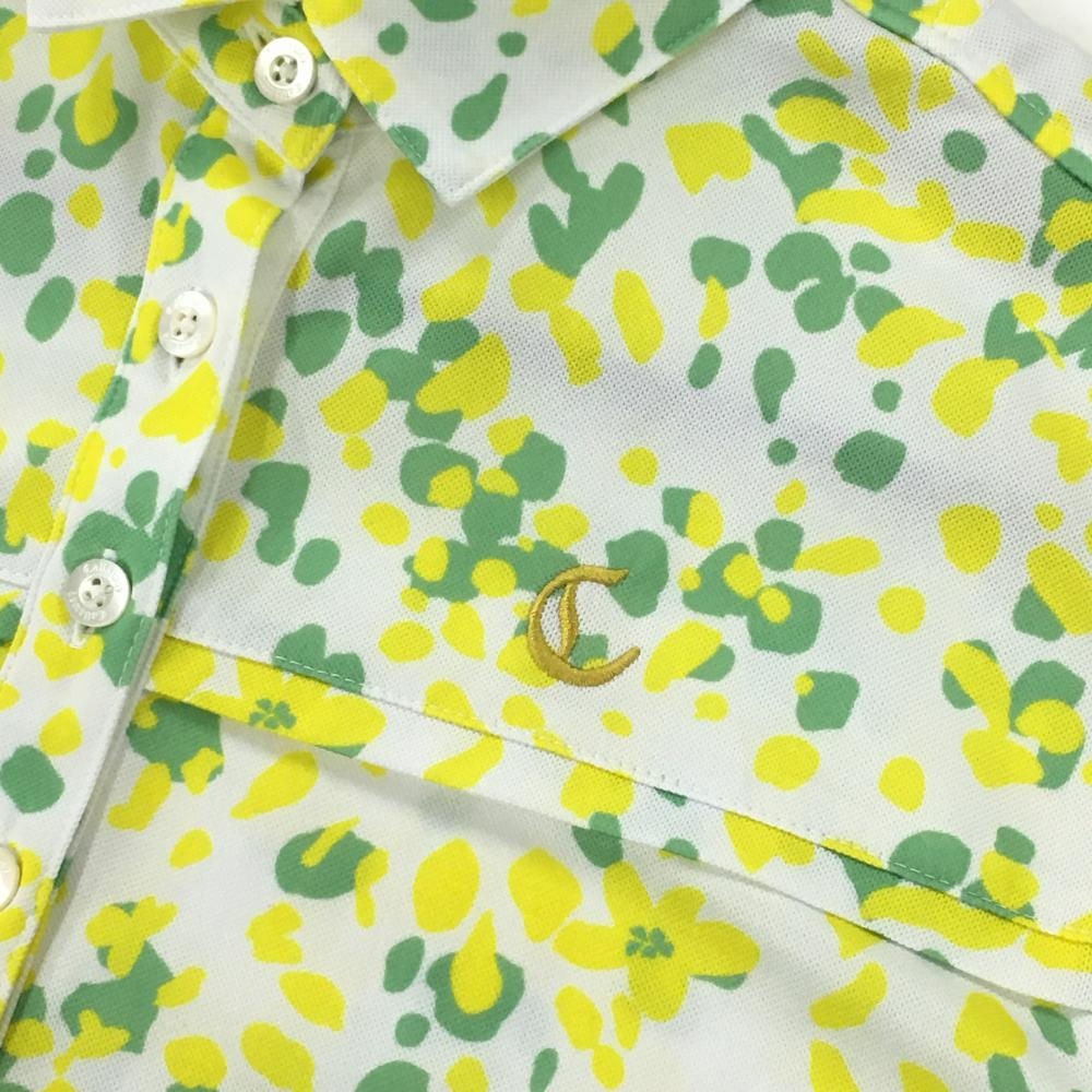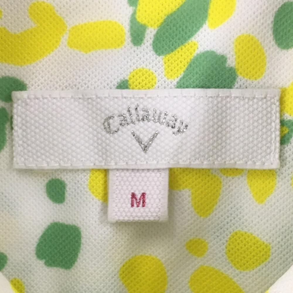 【超美品】キャロウェイ 半袖ポロシャツ 白×イエロー 総柄 花 レディース M ゴルフウェア Callaway