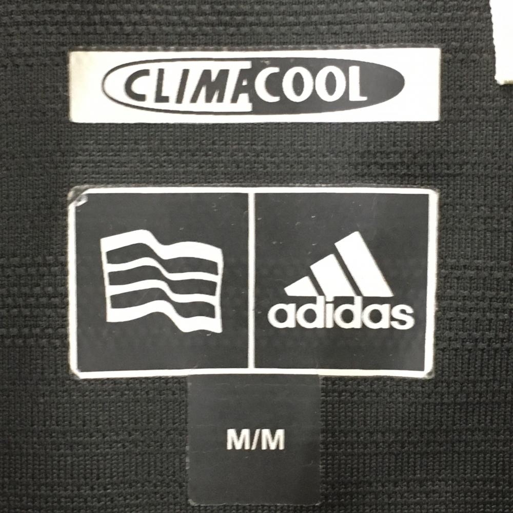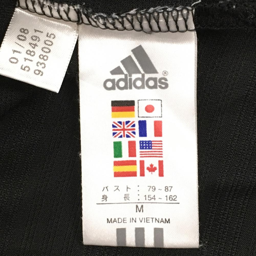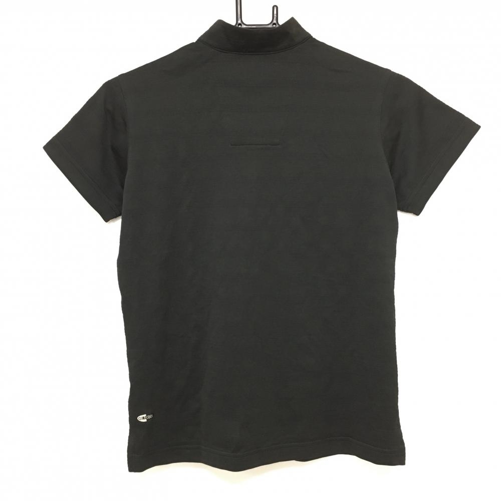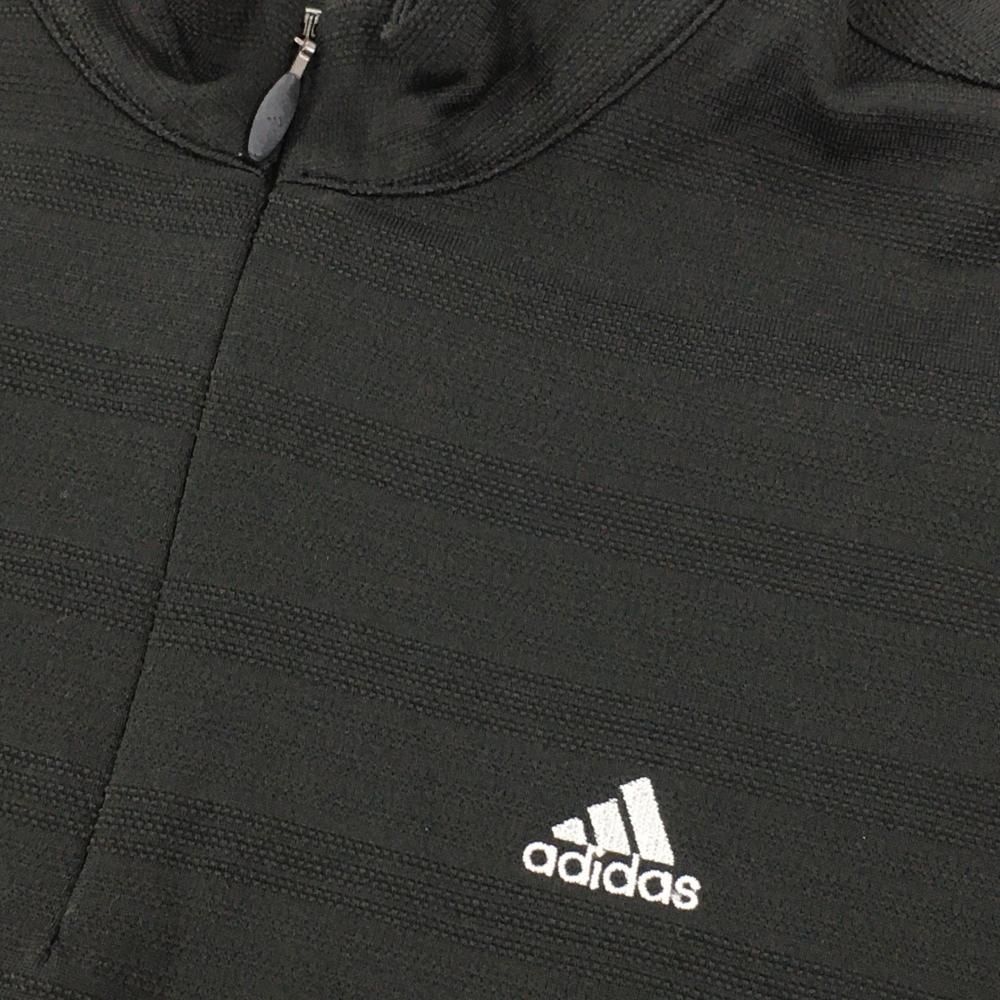 【美品】アディダス 半袖ハイネックシャツ 黒 ボーダー調織生地 ハーフジップ ロゴ刺しゅう レディース M/M ゴルフウェア adidas