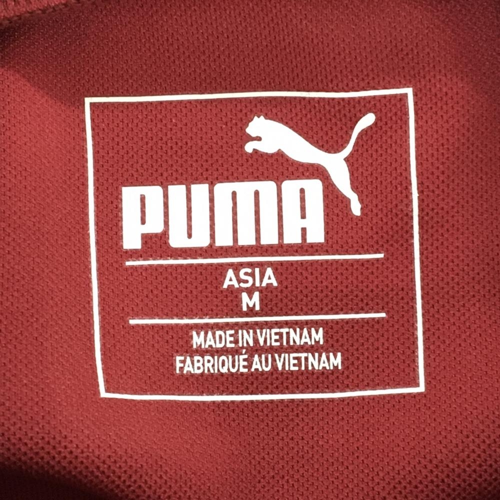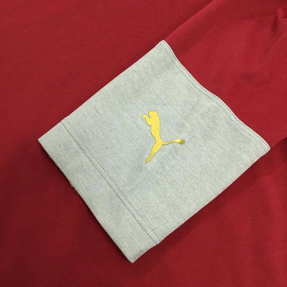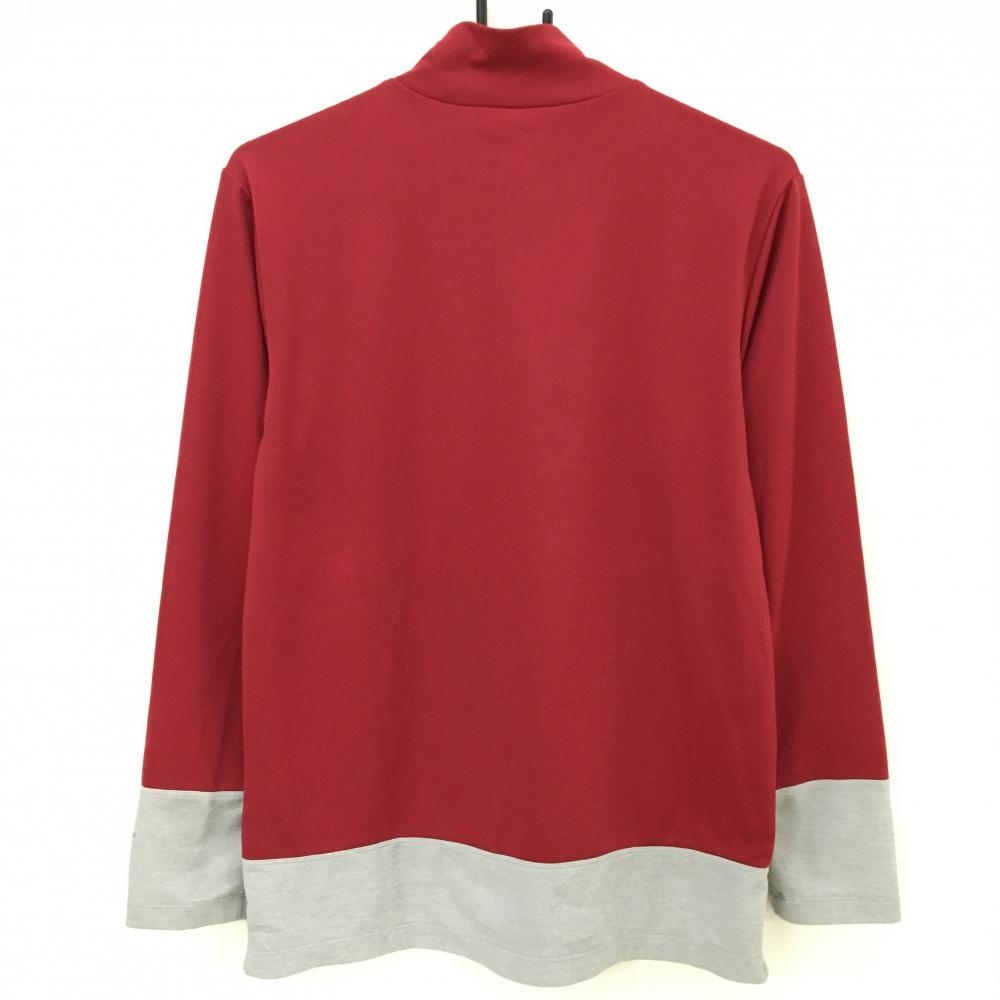 プーマ 長袖ハイネックシャツ レッド×グレー 袖口ロゴゴールド メンズ M ゴルフウェア PUMA