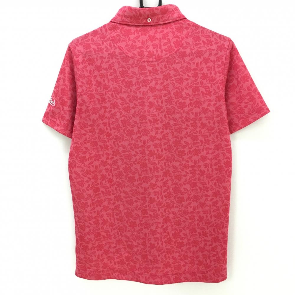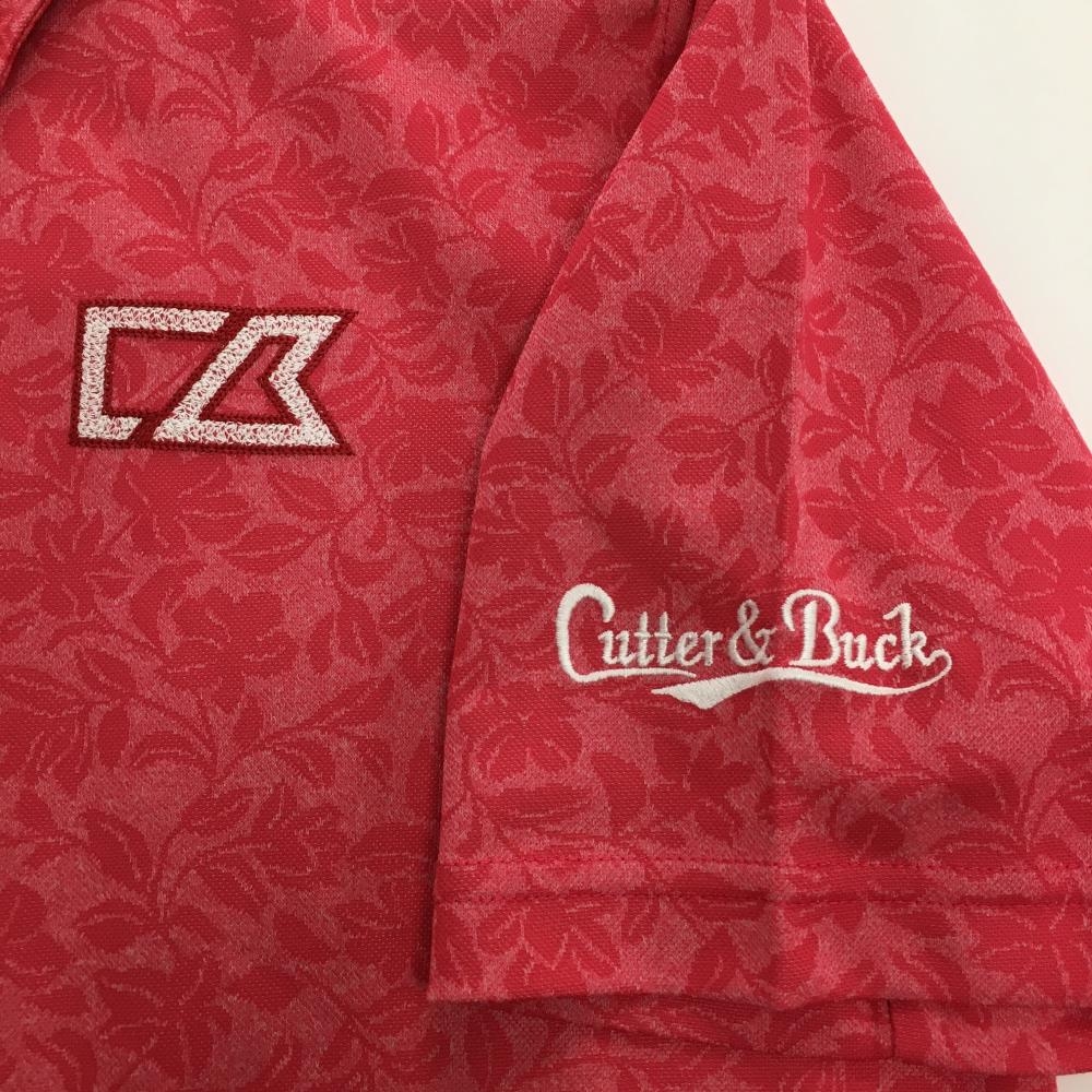 【超美品】カッターアンドバック 半袖ポロシャツ ピンク 花柄地模様 ボタンダウン メンズ M ゴルフウェア CUTTER&BUCK