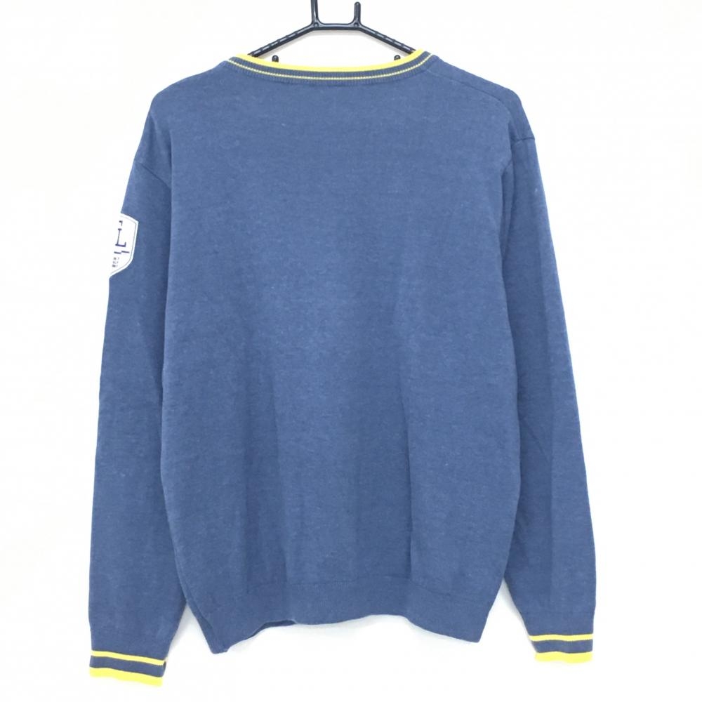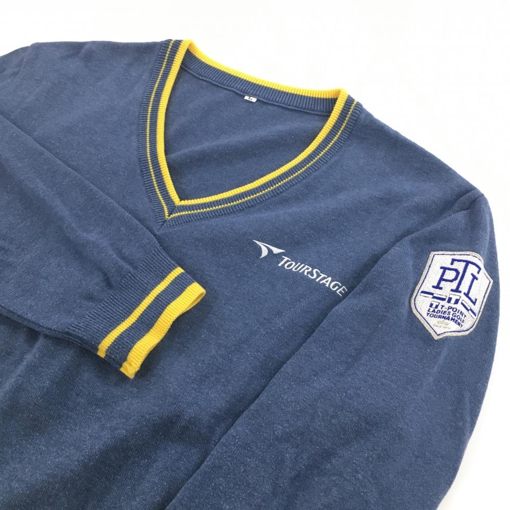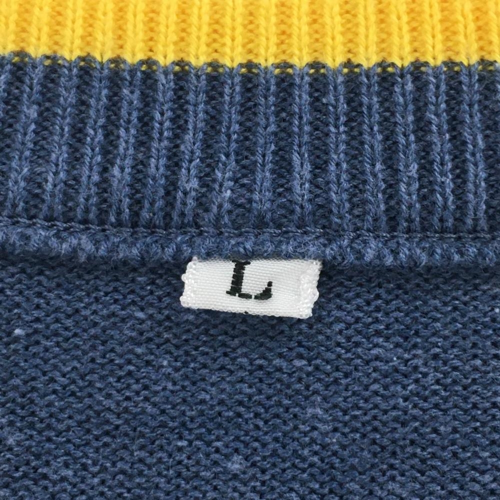 ツアーステージ セーター スモーキーブルー×イエロー Vネックロゴ刺しゅう ニット メンズ L ゴルフウェア TOURSTAGE