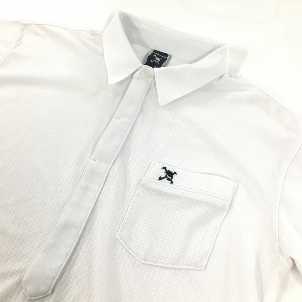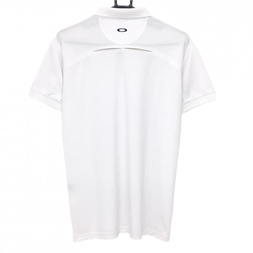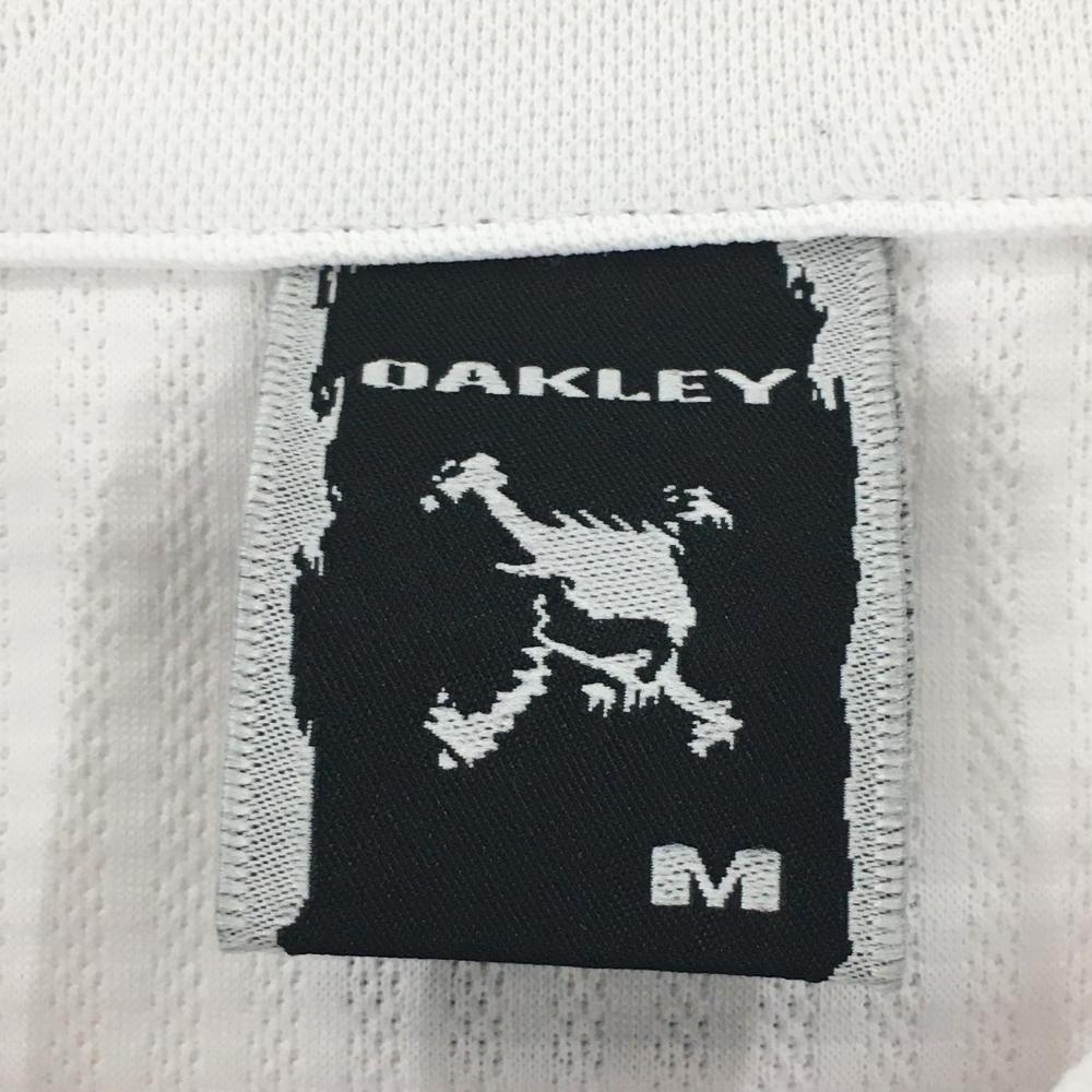 【超美品】オークリー 半袖ポロシャツ 白 織生地 スカル刺しゅう メンズ M ゴルフウェア Oakley