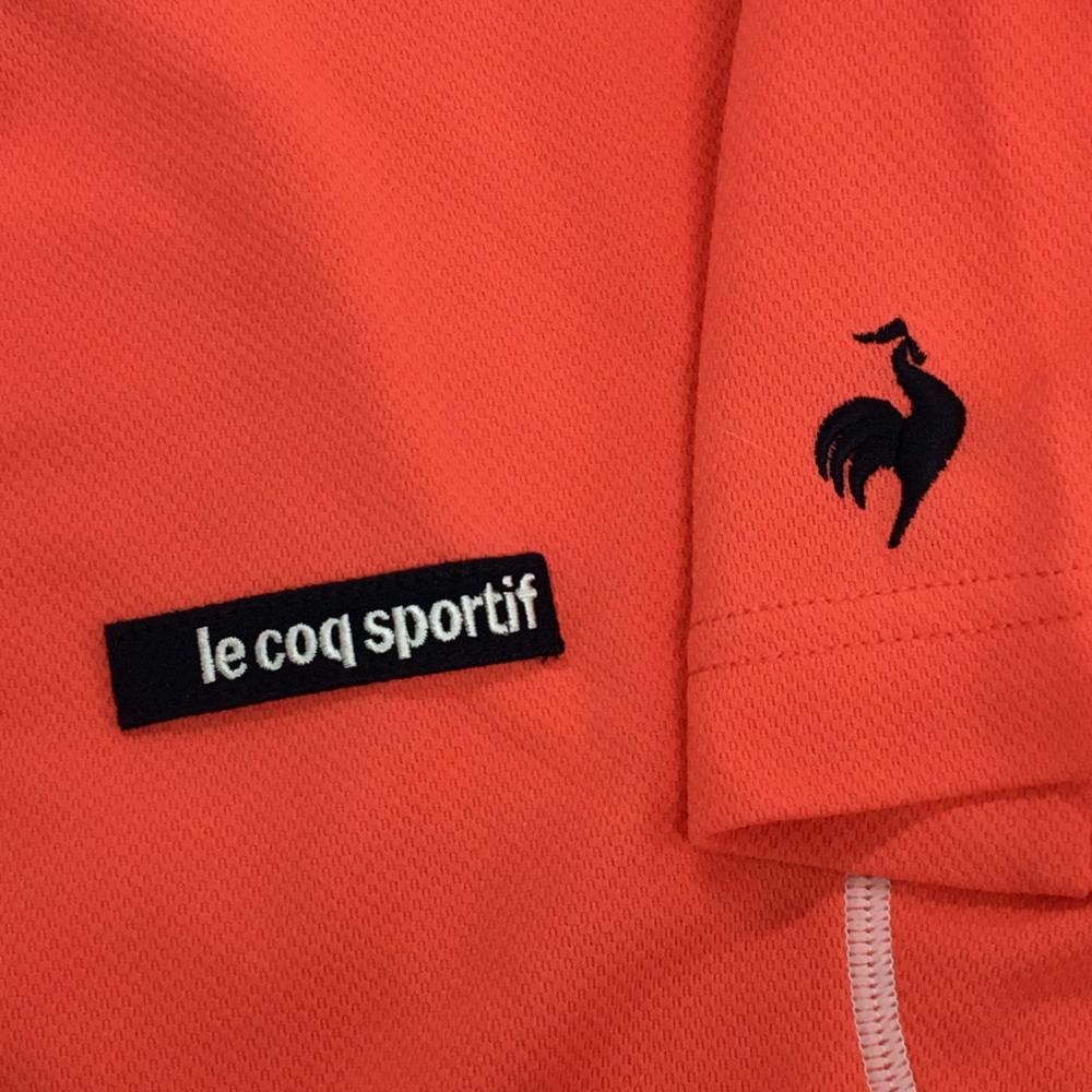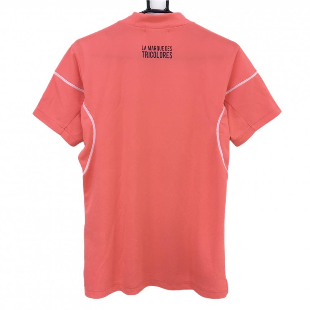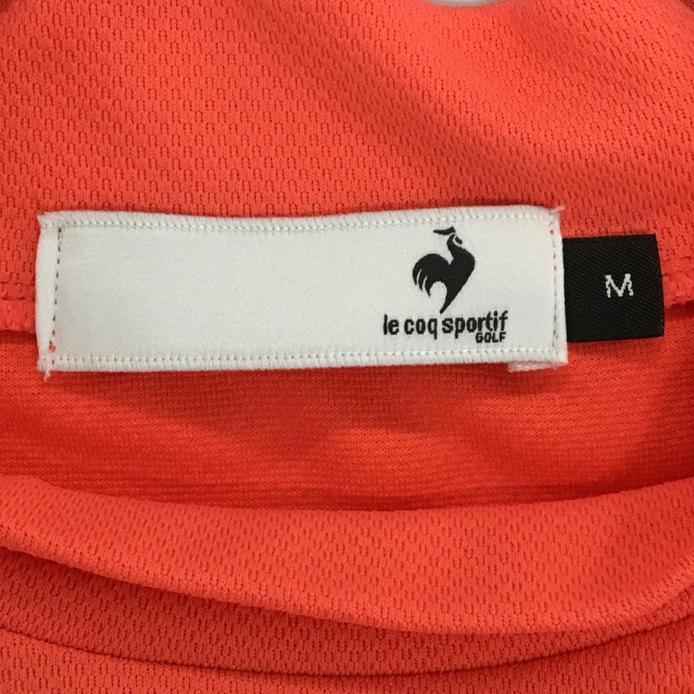 【美品】ルコックゴルフ 半袖ハイネックシャツ サーモンピンク ステッチ白 メンズ M ゴルフウェア le coq sportif