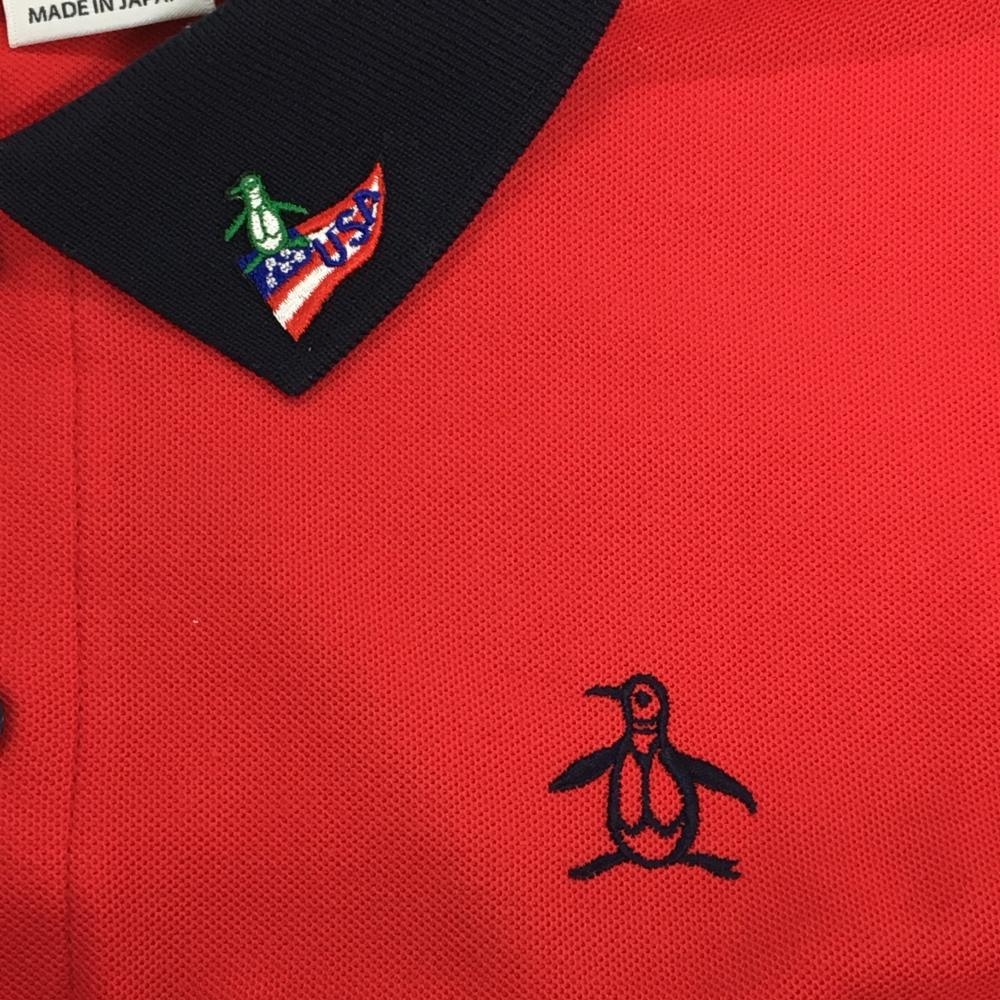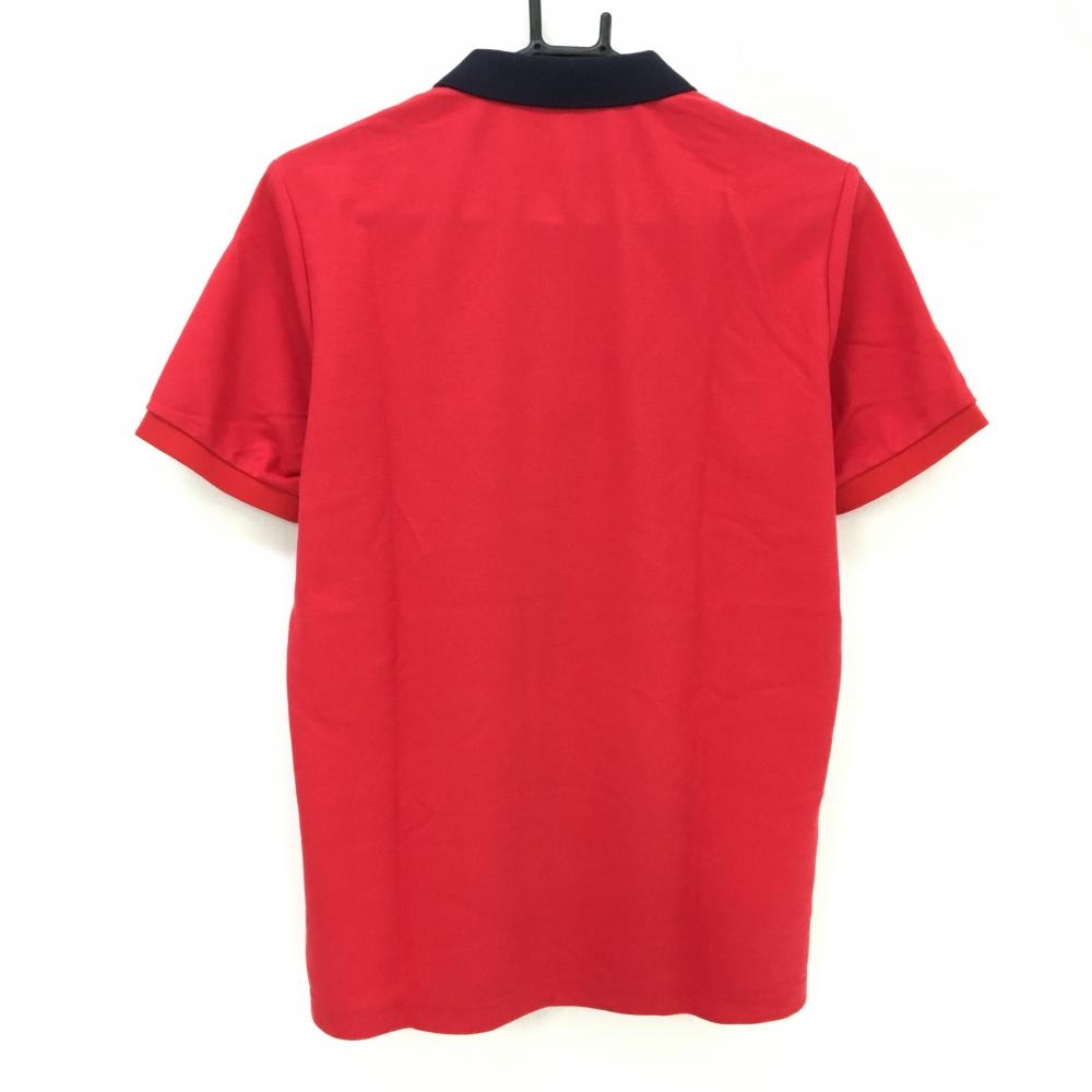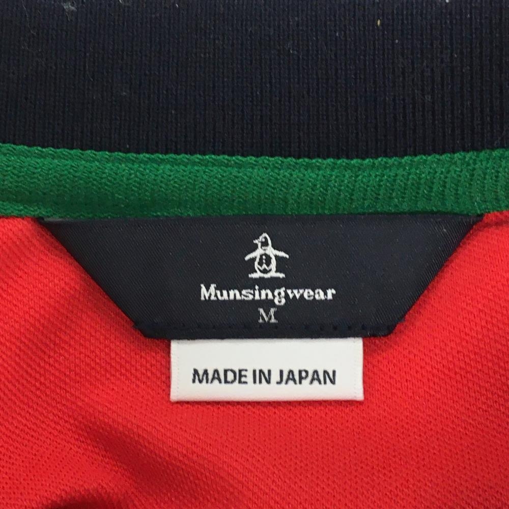 【美品】マンシングウェア 半袖ポロシャツ レッド×ネイビー 襟刺しゅう メンズ M ゴルフウェア Munsingwear
