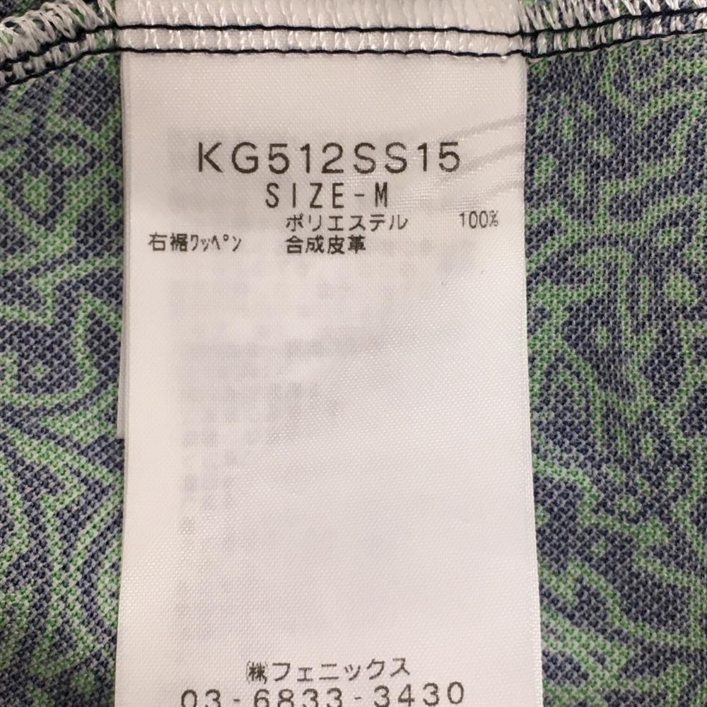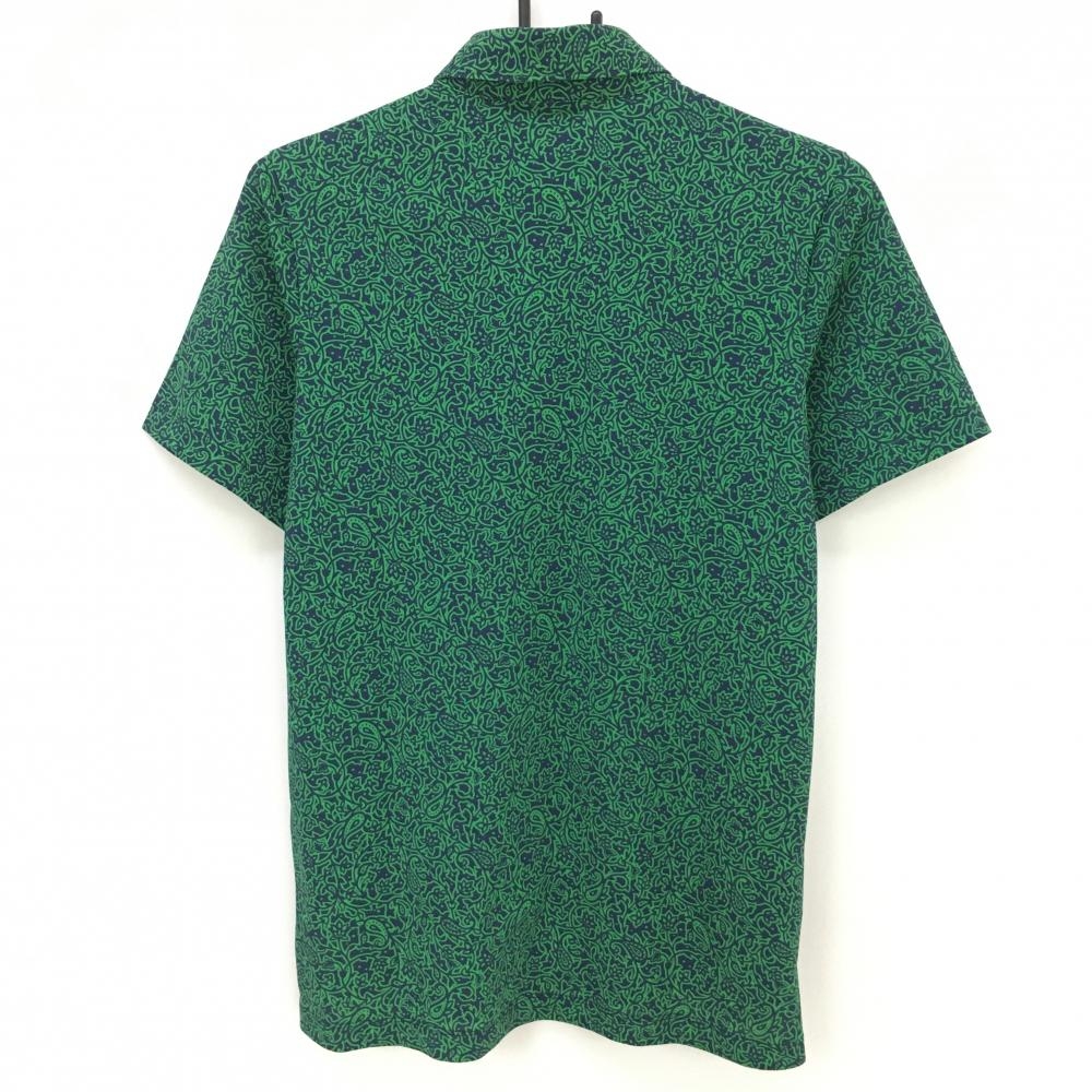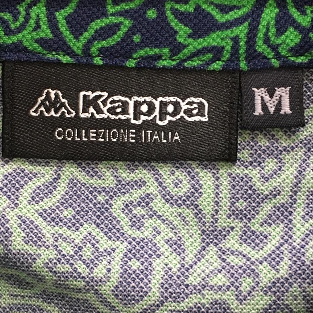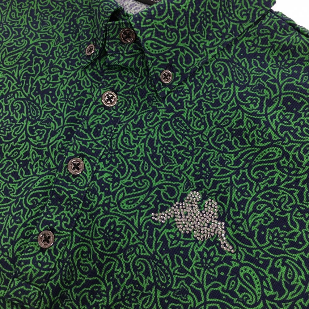 【超美品】カッパ 半袖ポロシャツ ネイビー×グリーン 総柄 ラインストーンロゴ ボタンダウン メンズ M ゴルフウェア Kappa