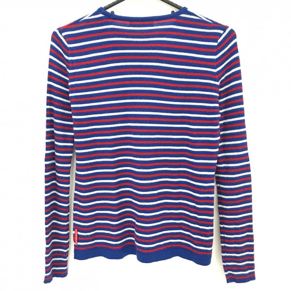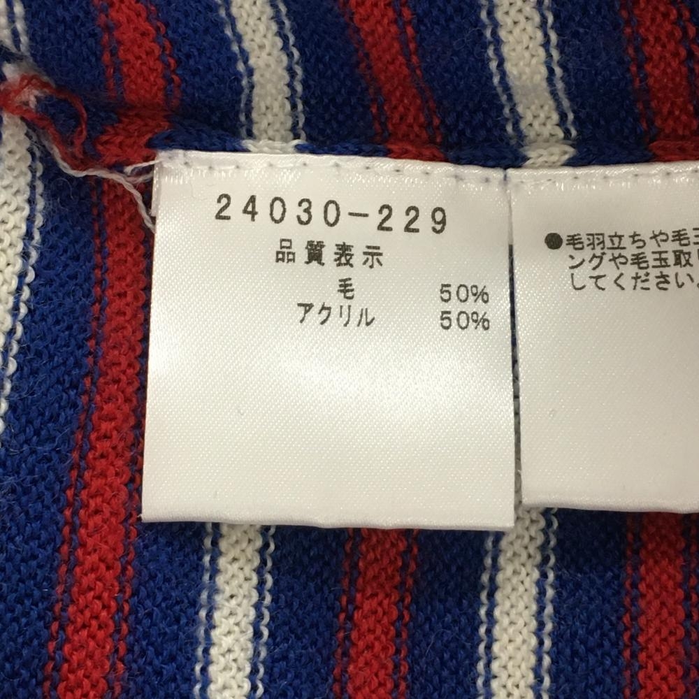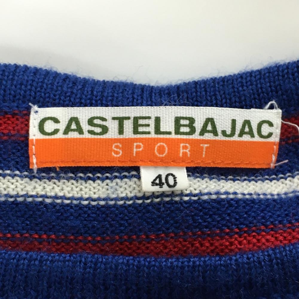 【美品】カステルバジャック セーター ブルー×白×レッド ボーダー ウール混 レディース 40(M) ゴルフウェア CASTELBAJAC
