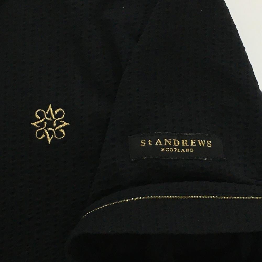 セントアンドリュース 半袖ポロシャツ 黒×ゴールド サッカー生地調 レディース S ゴルフウェア 2023年モデル St ANDREWS