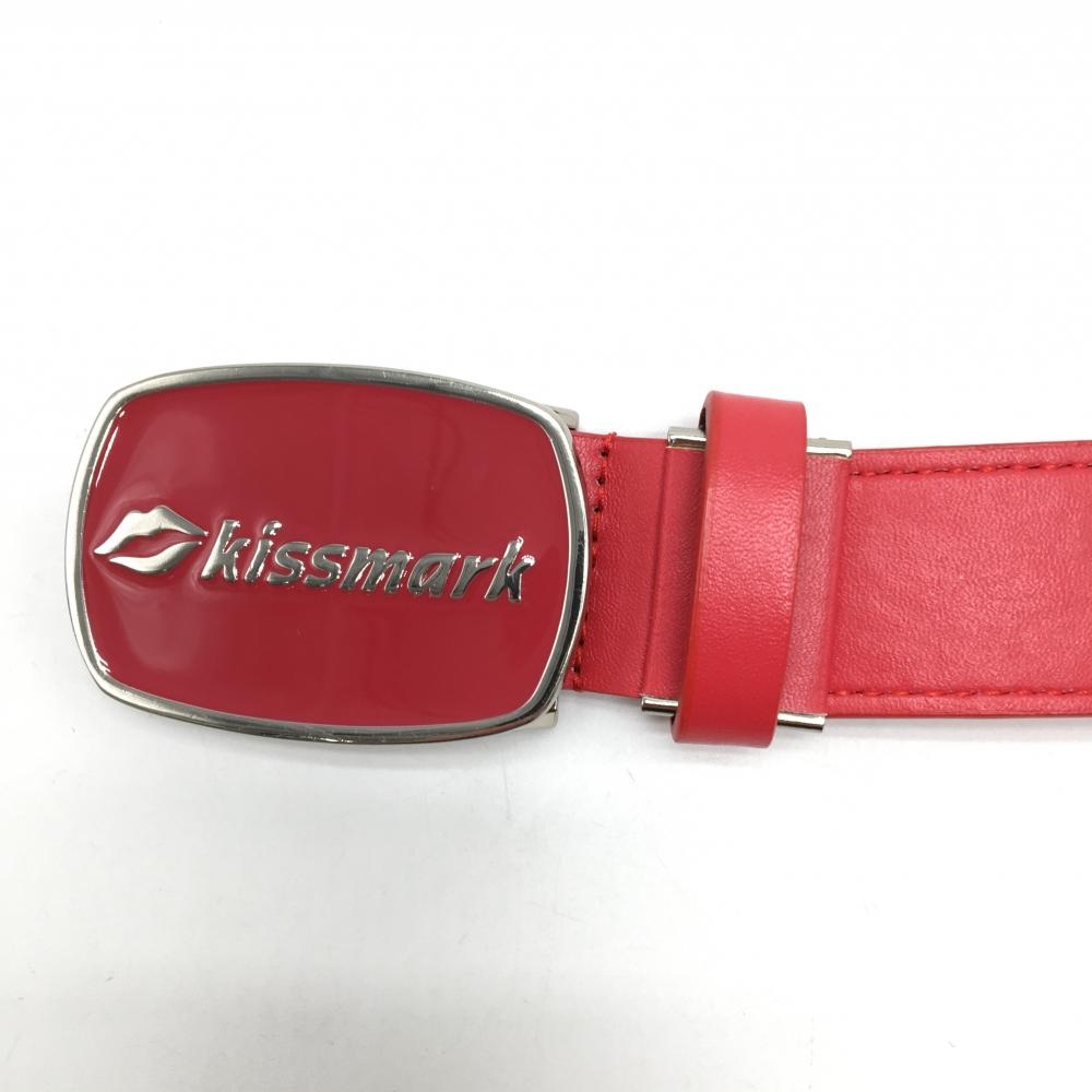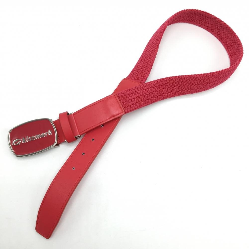 【美品】キスマーク トップ式メッシュベルト レッド 編み込み ロゴバックル レディース ゴルフウェア kissmark