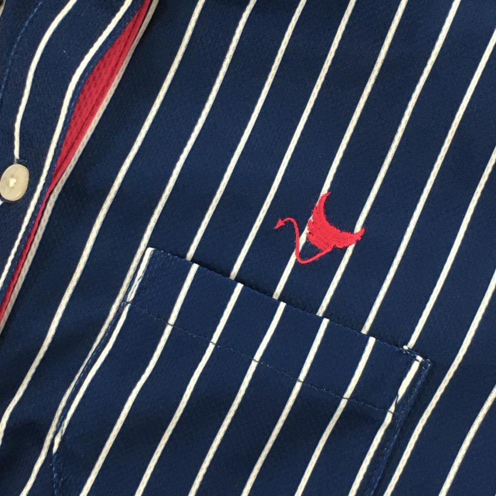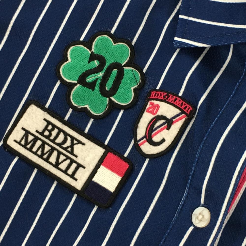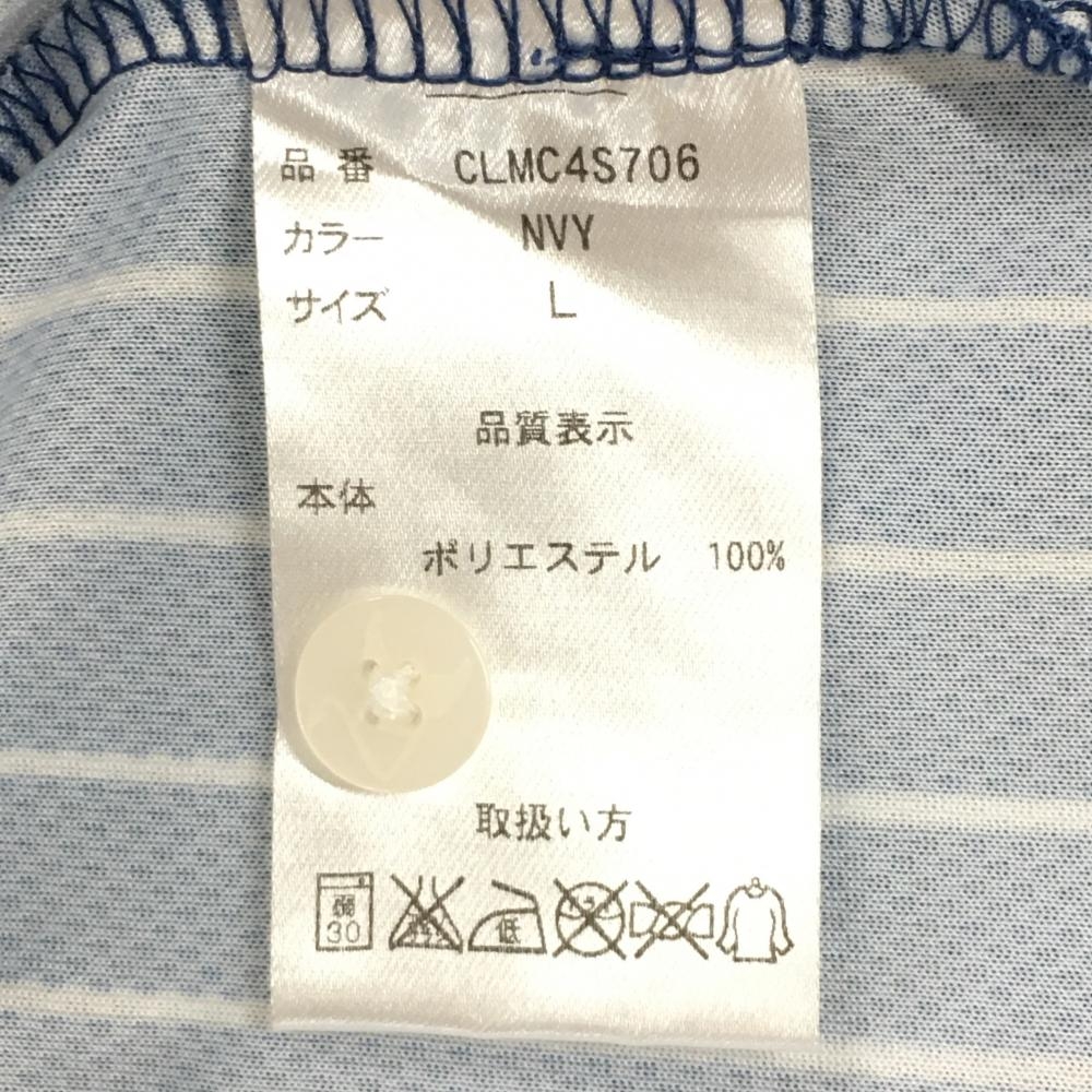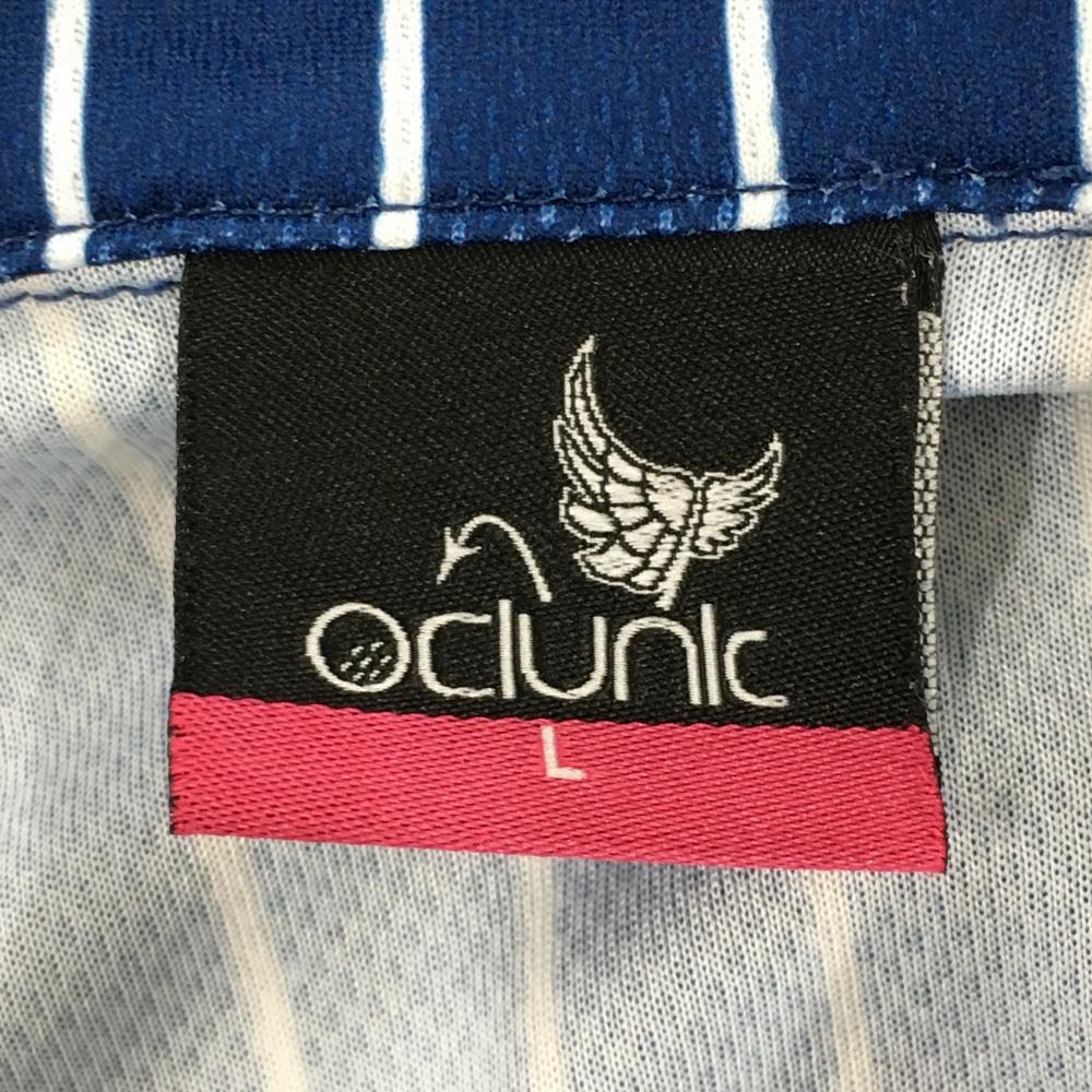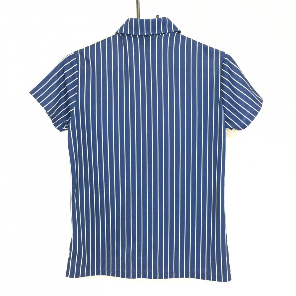 【美品】クランク 半袖ポロシャツ ネイビー×白 ストライプ クローバー レディース L ゴルフウェア CLUNK