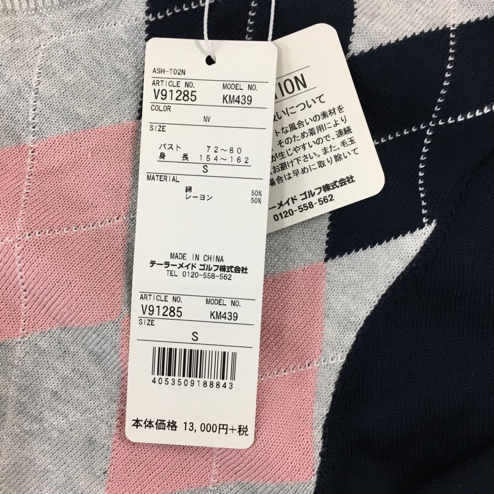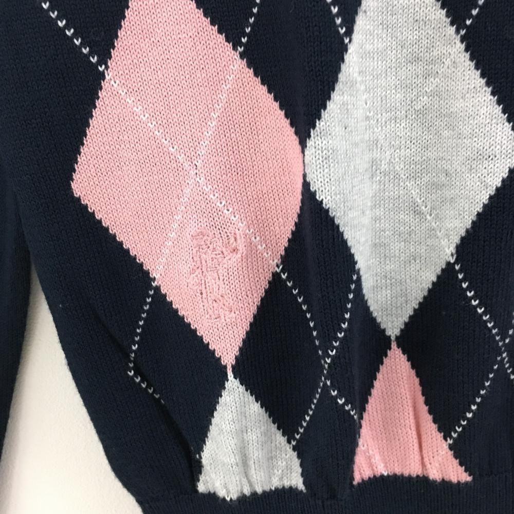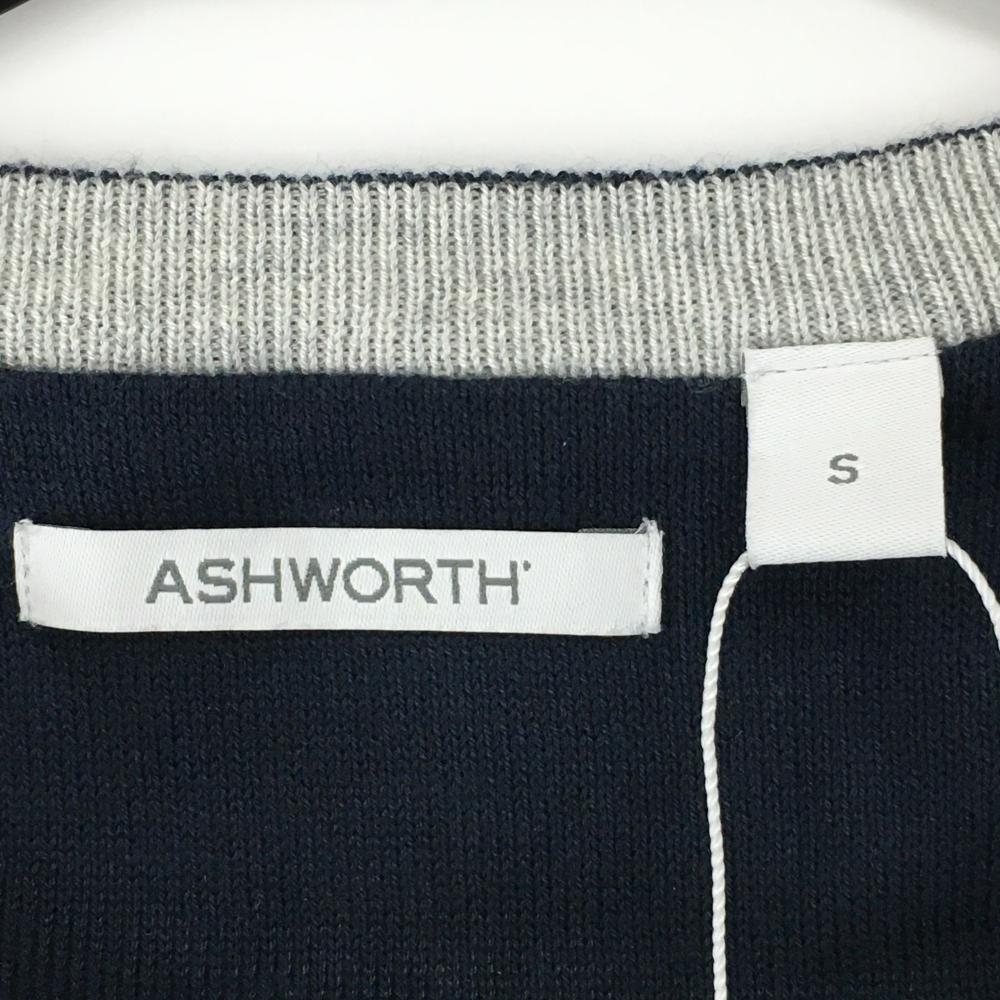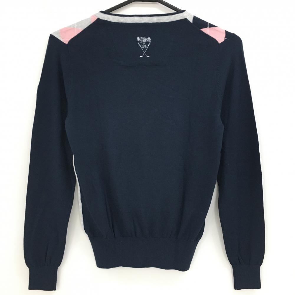 【新品】アシュワース セーター ネイビー×ピンク 前身頃アーガイル柄 コットン混 ニット レディース S ゴルフウェア ASHWORTH