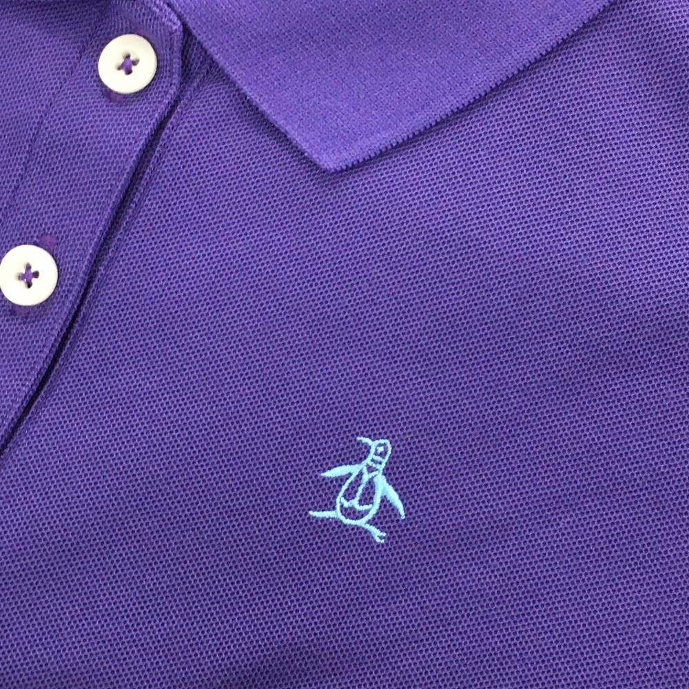 【超美品】マスターバニー 半袖ポロシャツ パープル ロゴライトブルー レディース M ゴルフウェア MASTER BUNNY EDITION