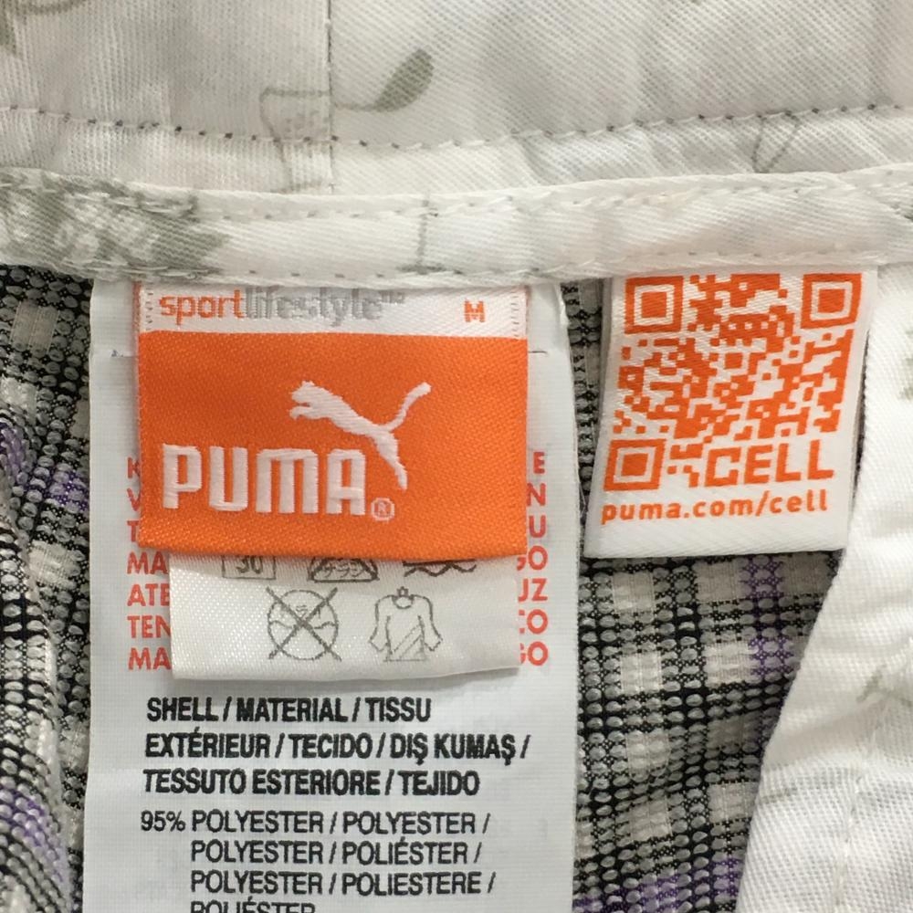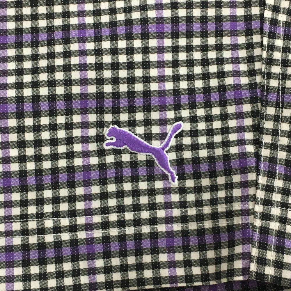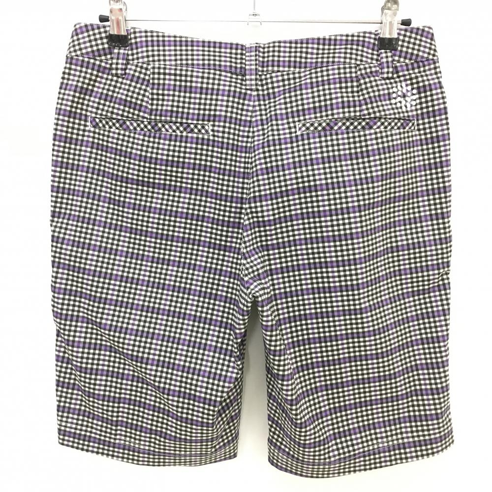 【美品】プーマ ハーフパンツ 黒×パープル チェック メンズ M ゴルフウェア PUMA