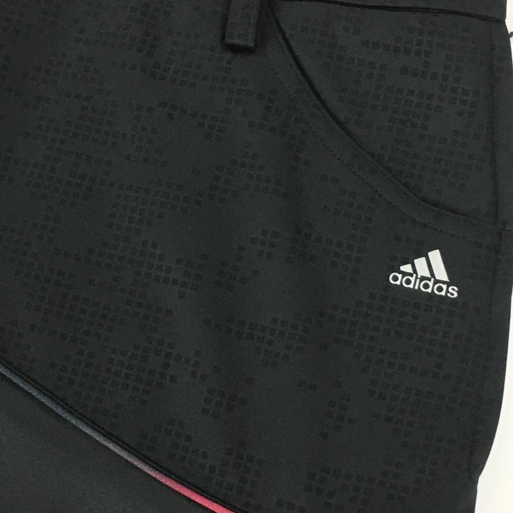 【超美品】アディダス スカート 黒 上方総柄地模様 ストレッチ レディース L ゴルフウェア adidas