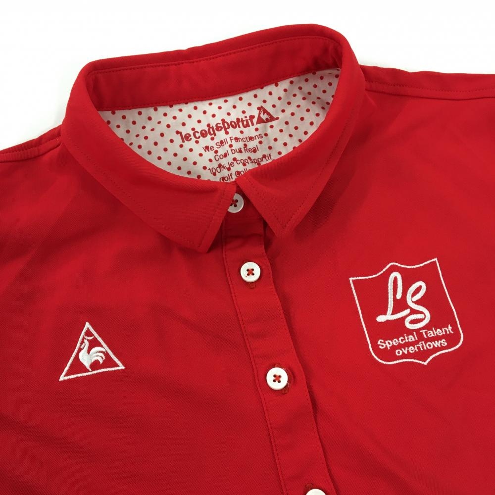 【超美品】ルコック 半袖シャツ レッド ロゴ刺しゅう レディース LL ゴルフウェア le coq sportif