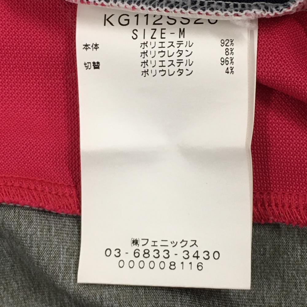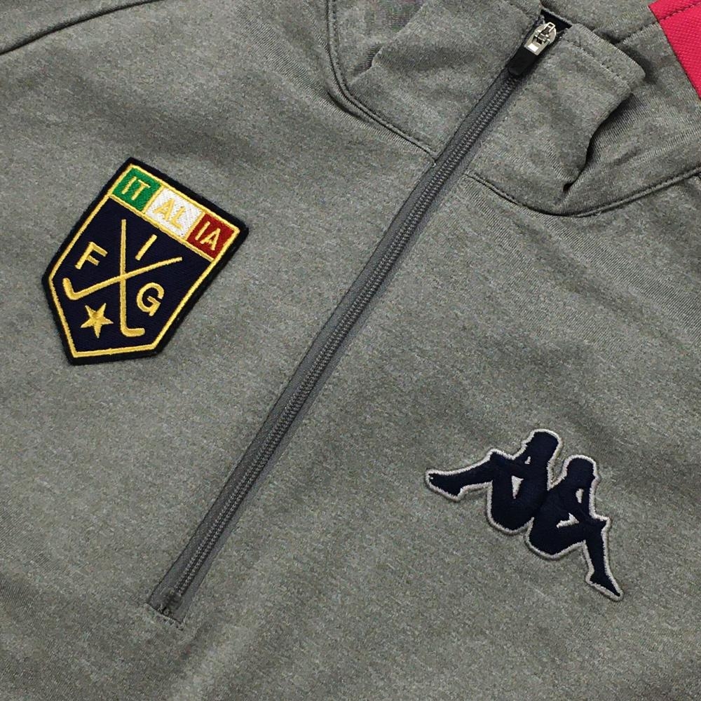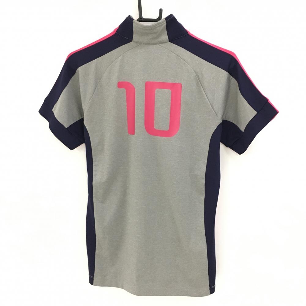 【超美品】カッパ 半袖ハイネックシャツ グレー×ピンク×ネイビー 背面ナンバリング ハーフジップ メンズ M ゴルフウェア Kappa