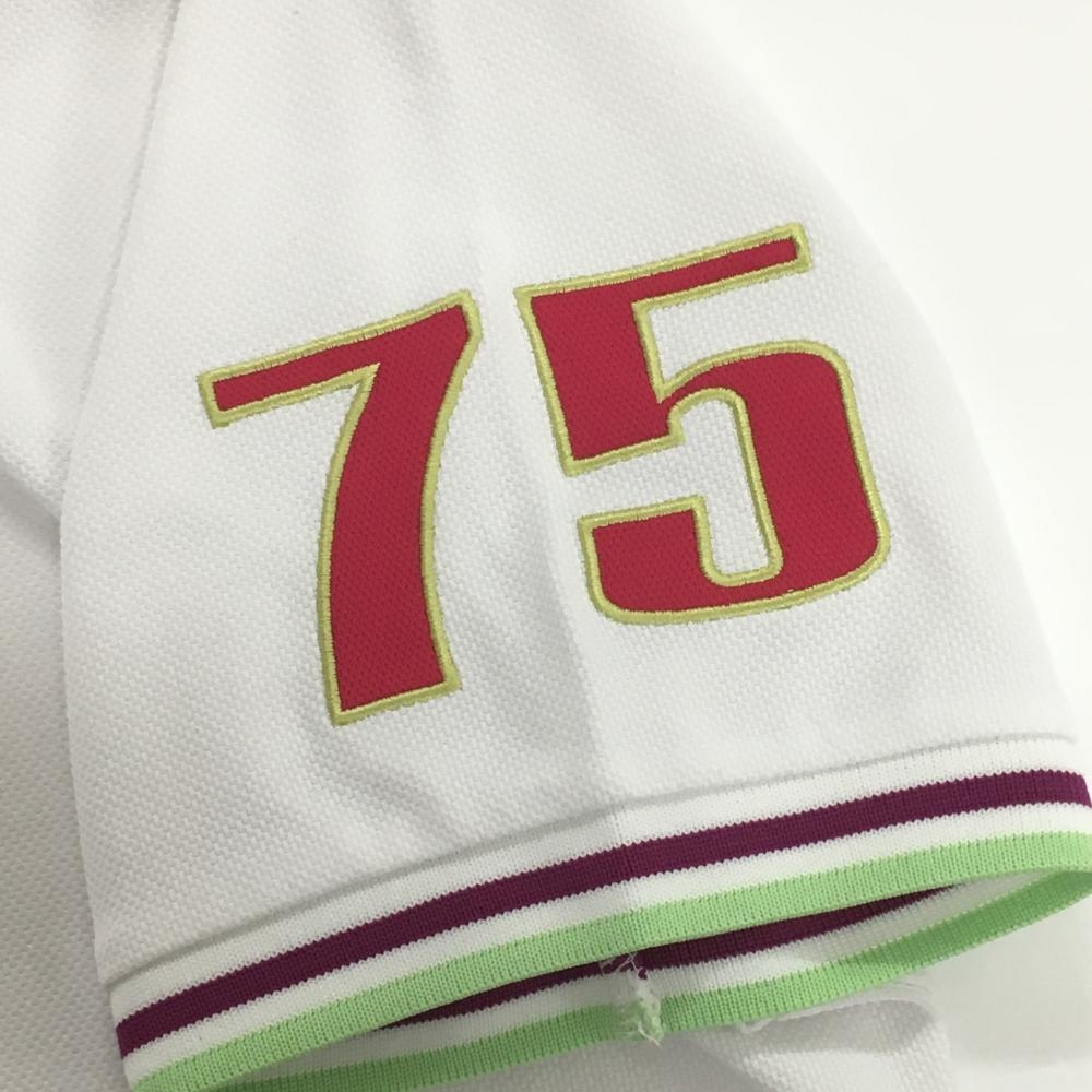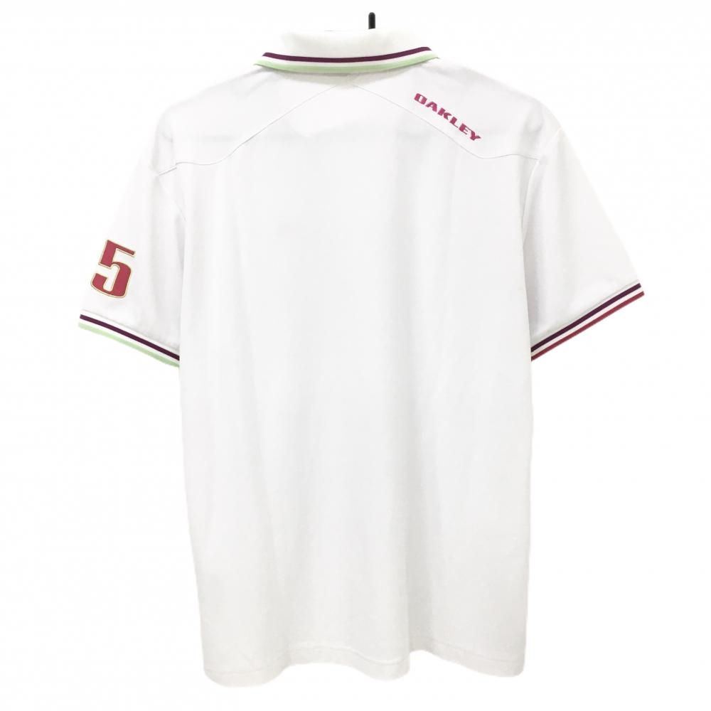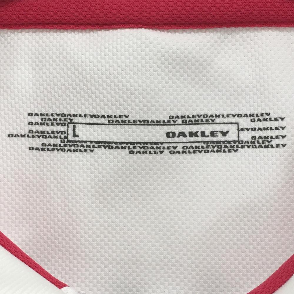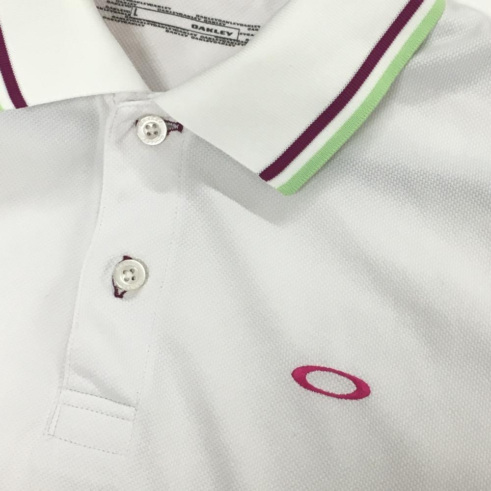 オークリー 半袖ポロシャツ 白×ピンク 袖口ライン ロゴ刺しゅう メンズ L ゴルフウェア Oakley