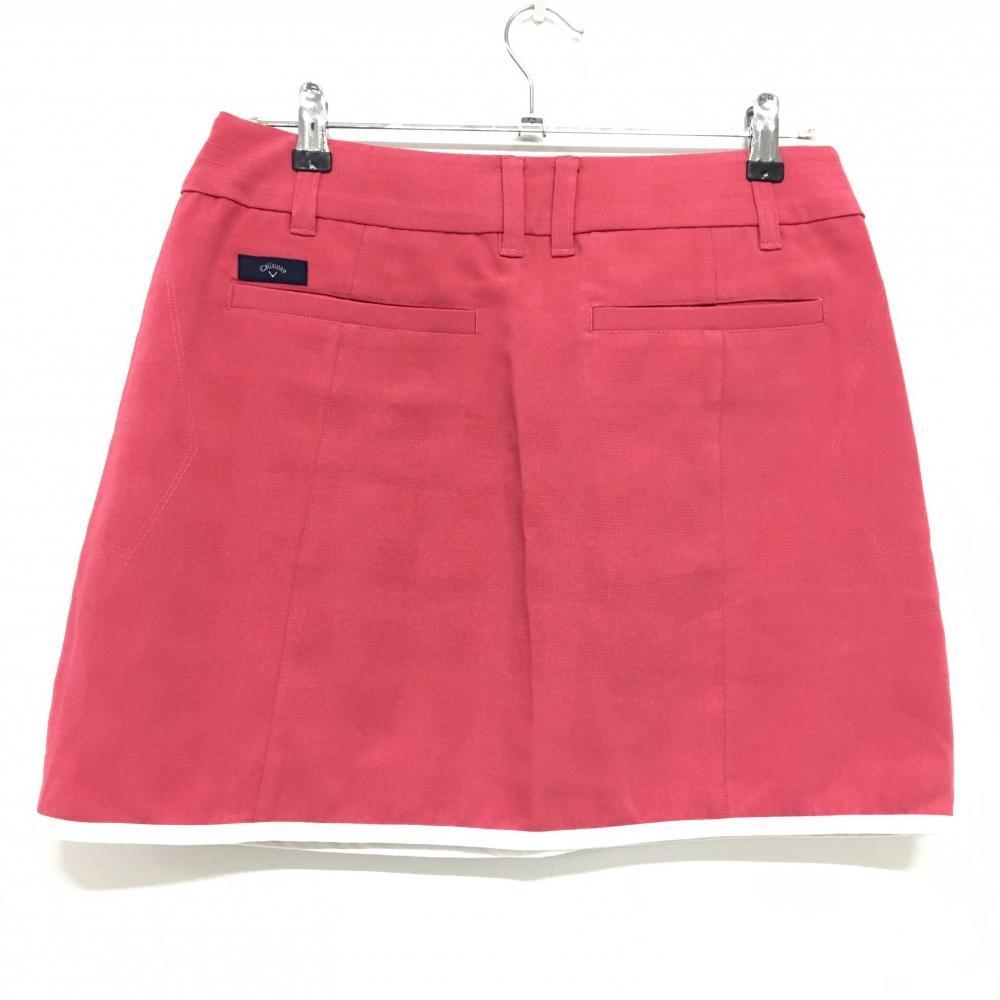 【超美品】キャロウェイ スカート ピンク×白 巻きスカート風 地模様 レディース LL ゴルフウェア Callaway
