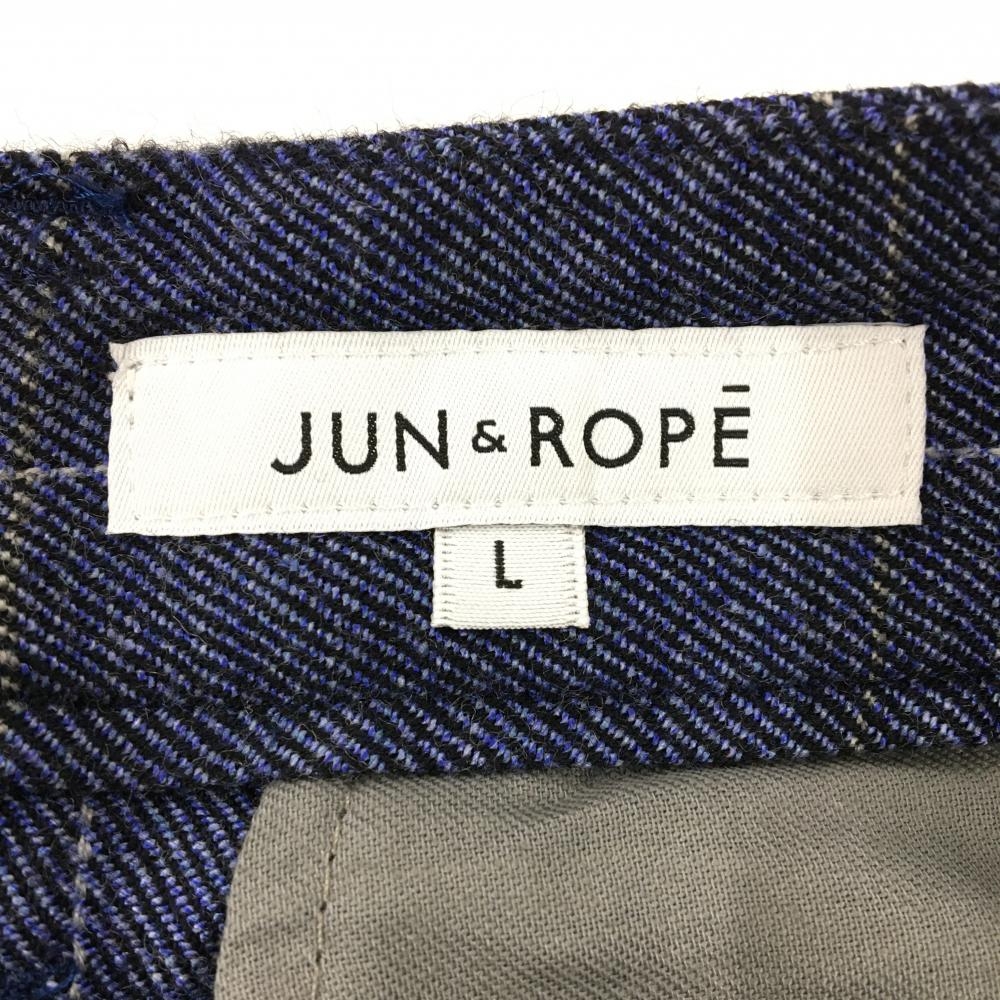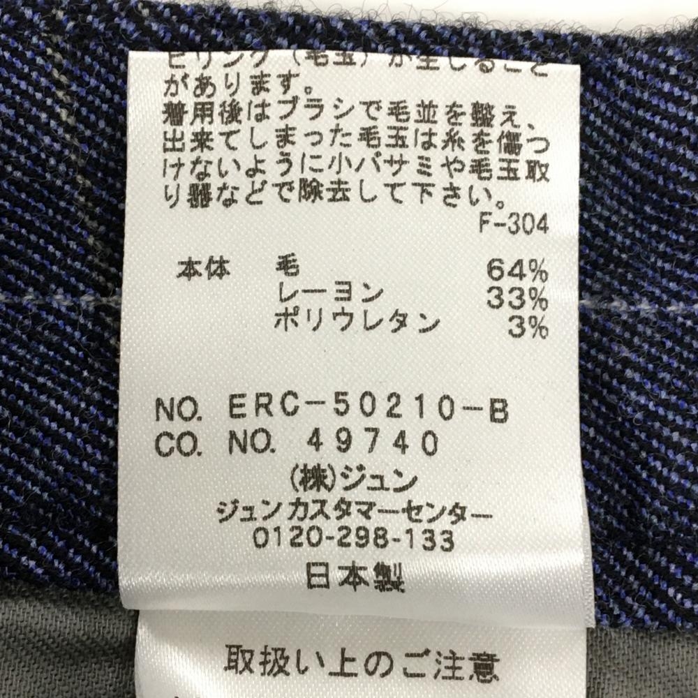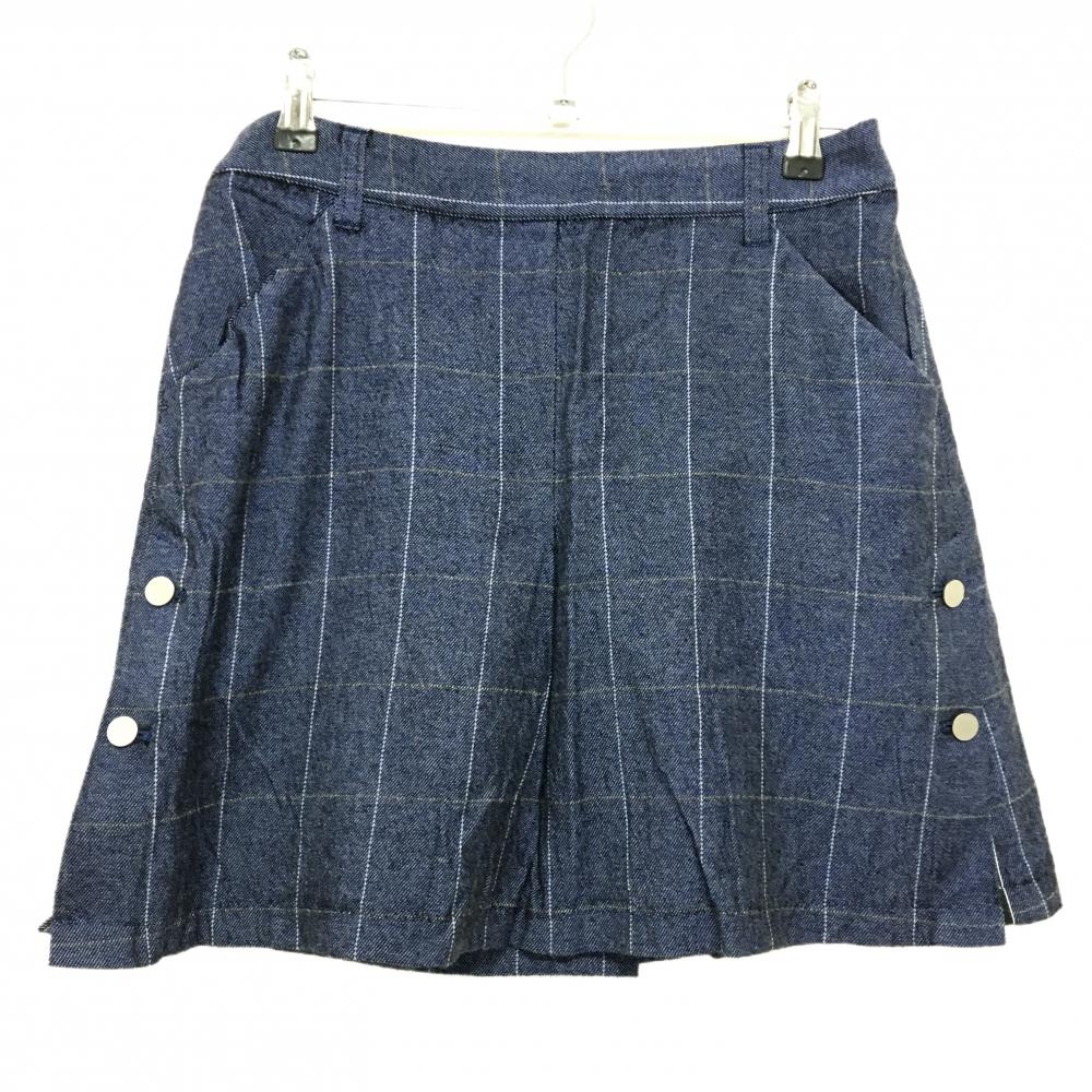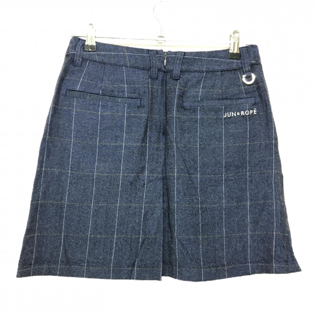 ジュンアンドロペ スカート ネイビー×ライトグレー 格子チェック ウール混 レディース L ゴルフウェア JUN&ROPE