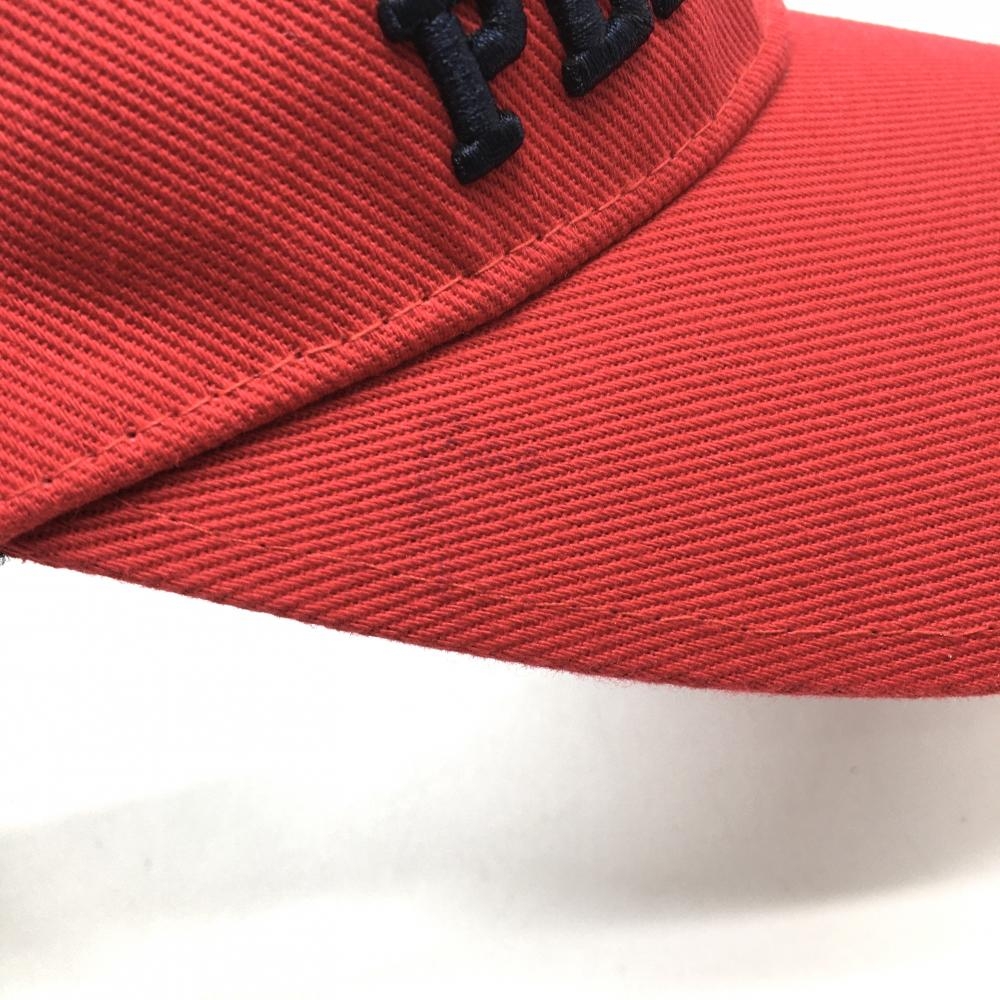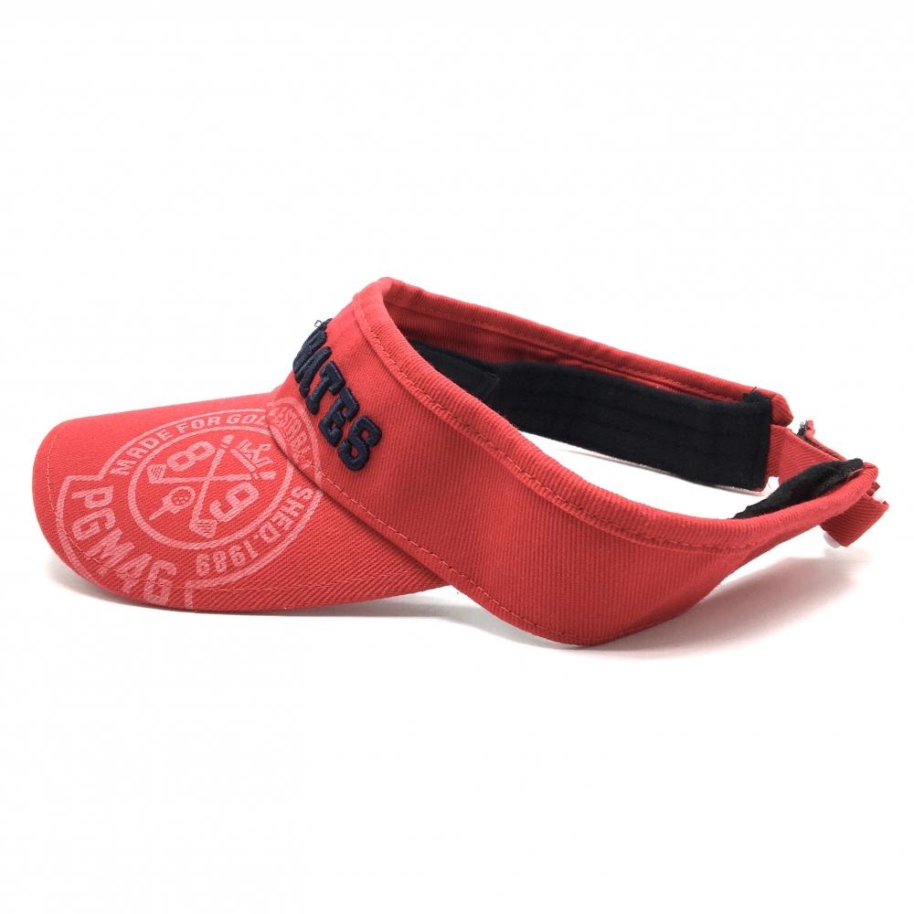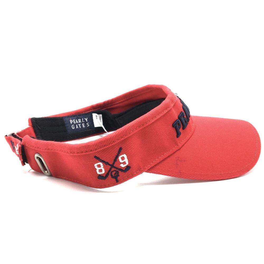【超美品】パーリーゲイツ サンバイザー レッド×ネイビー 立体ロゴ刺しゅう 汗取りパット FR ゴルフウェア PEARLY GATES