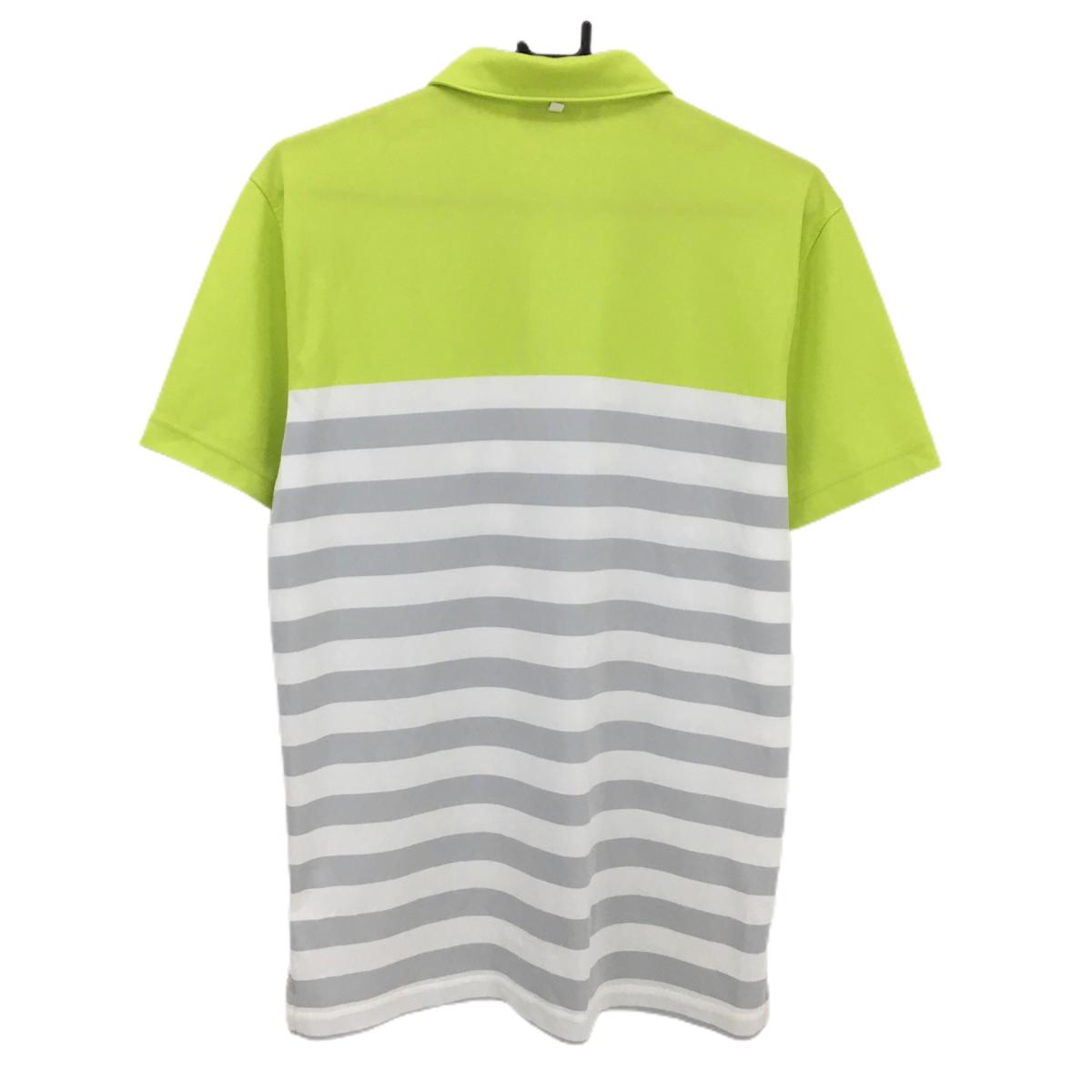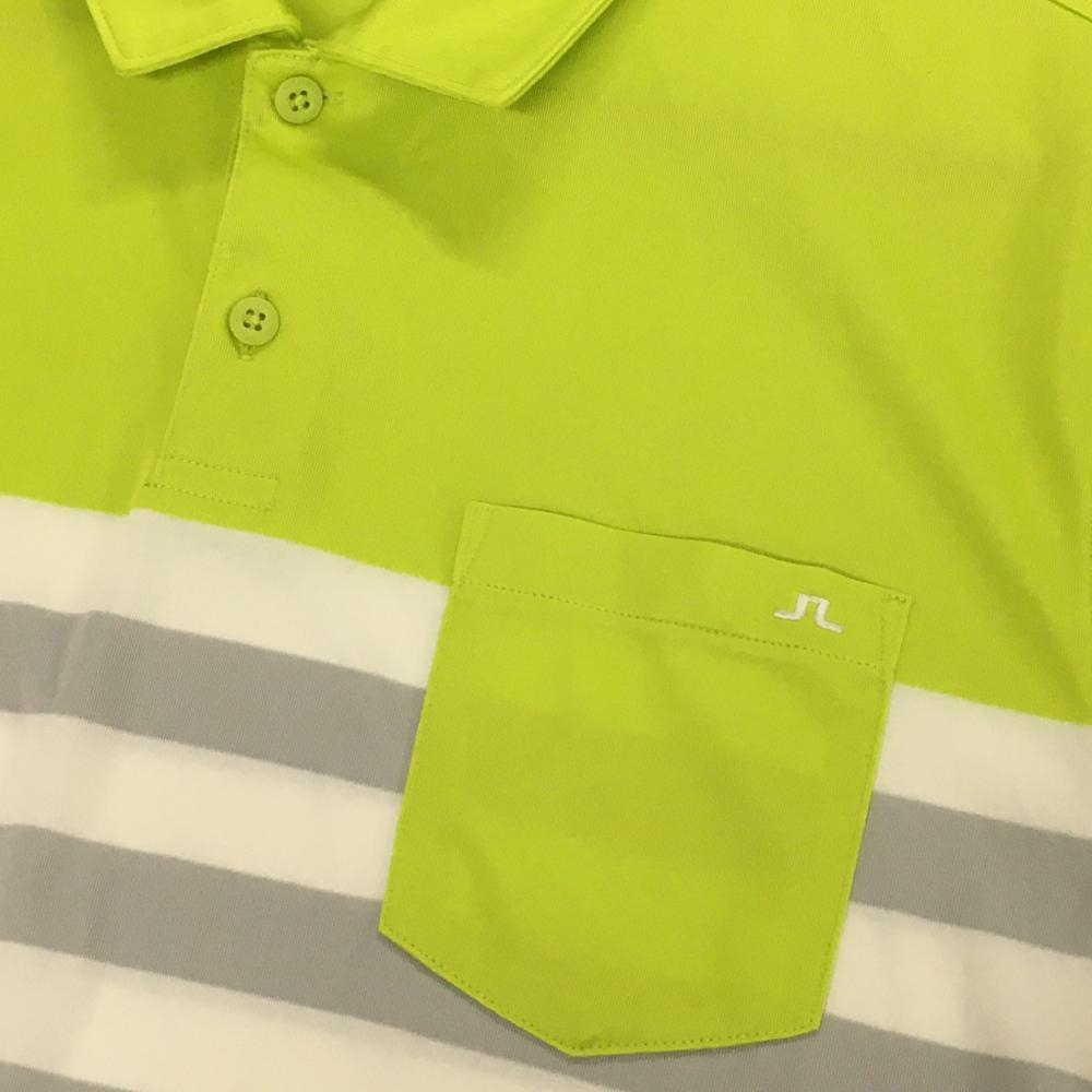 【超美品】ジェイリンドバーグ 半袖ポロシャツ ライムグリーン×白×グレー 一部ボーダー メンズ L ゴルフウェア J.LINDEBERG