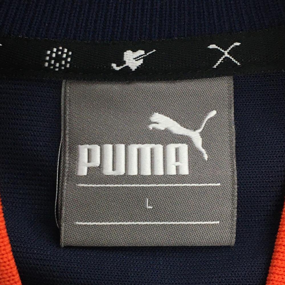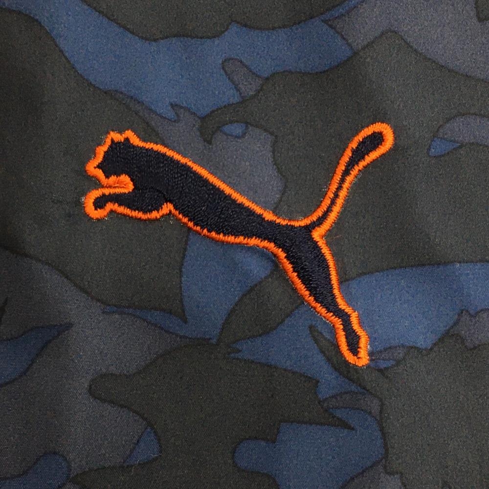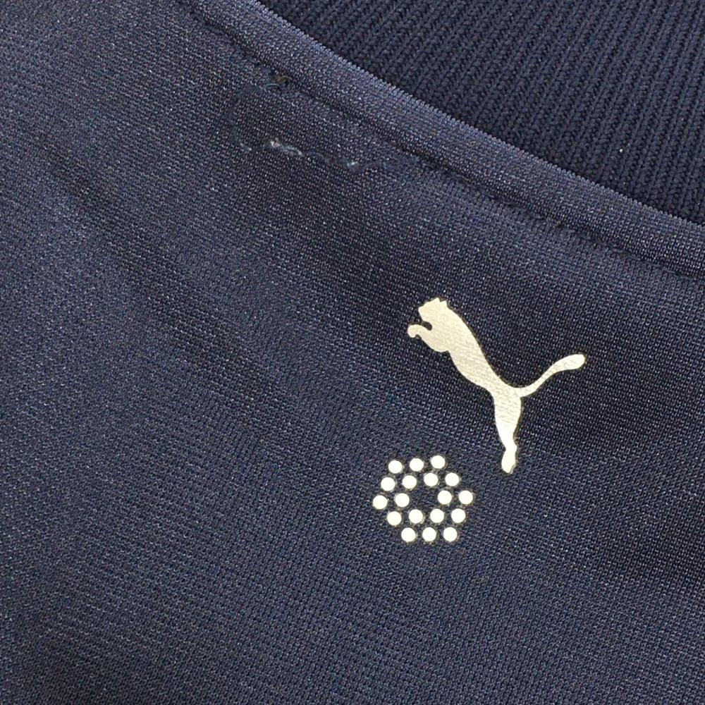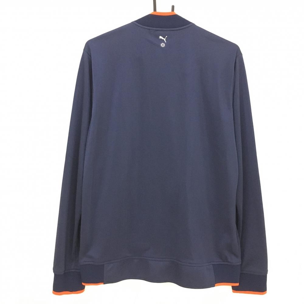 【美品】プーマ ジャケットブルゾン ネイビー×ブルー 前身頃リーフ柄 ロゴ刺しゅう メンズ L ゴルフウェア PUMA