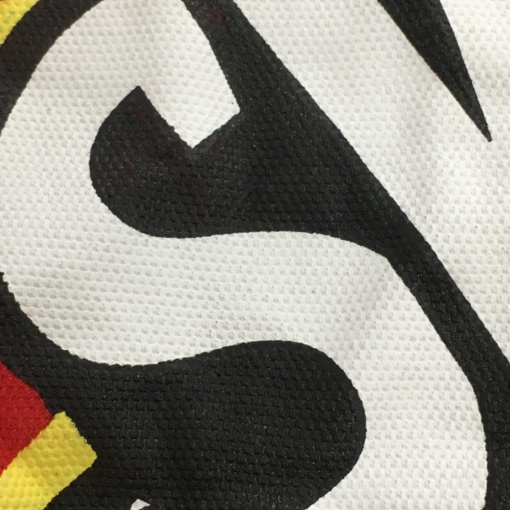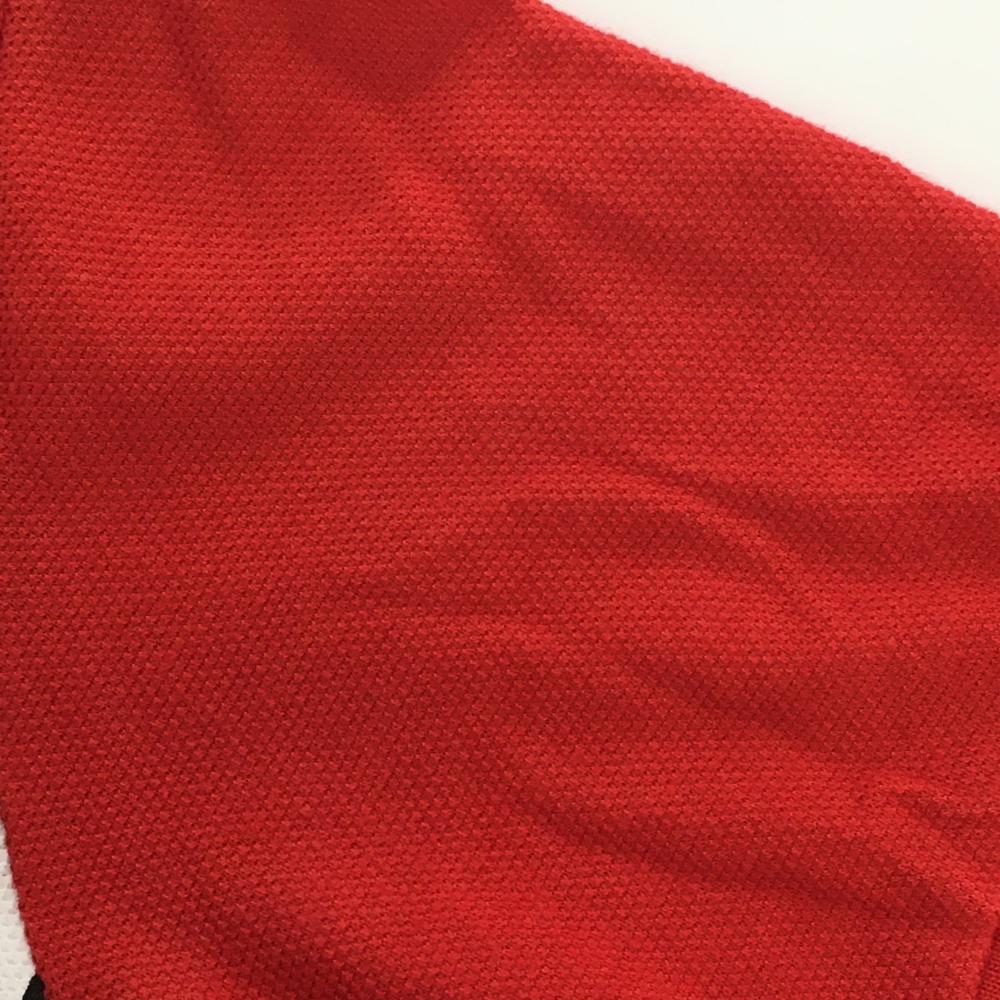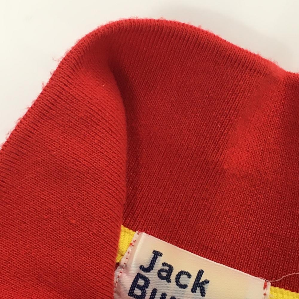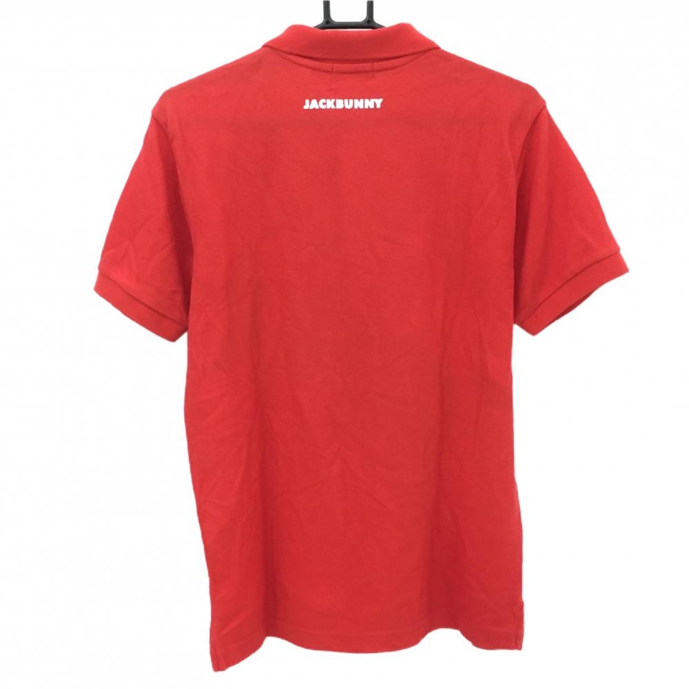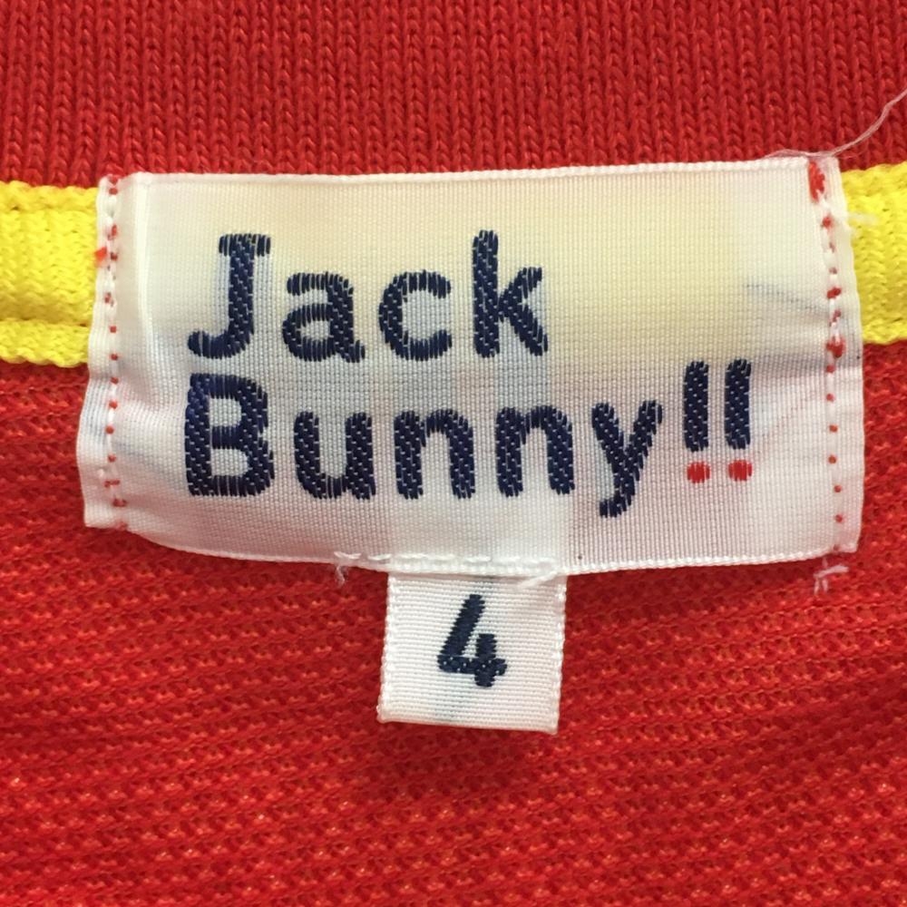 【美品】ジャックバニー 半袖ポロシャツ レッド×白×イエロー フロントビッグプリント メンズ 4(M) ゴルフウェア Jack Bunny