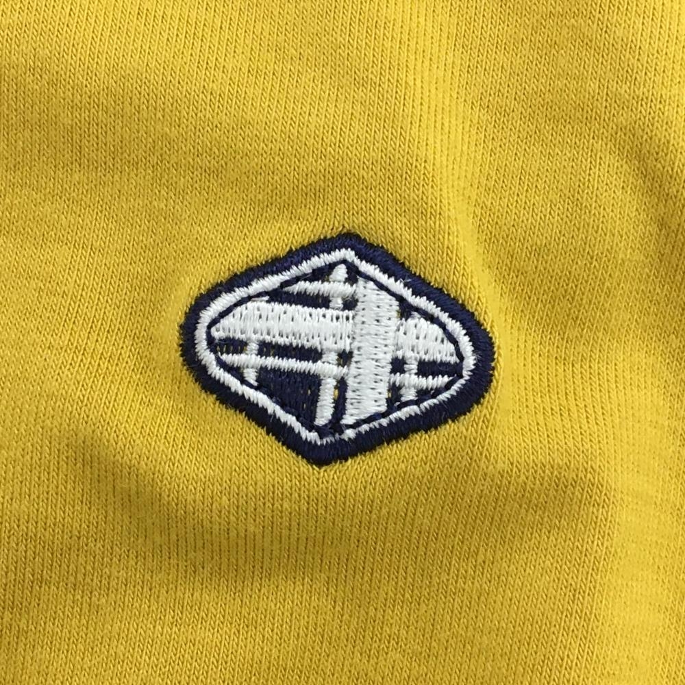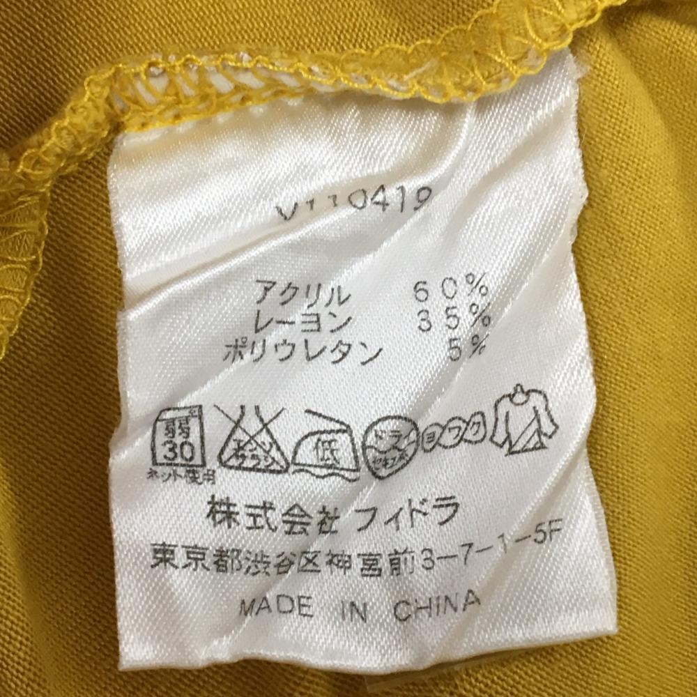 【美品】フィドラ 長袖ハイネックシャツ マスタードイエロー×ネイビー ロゴワッペン メンズ L/G ゴルフウェア FIDRA