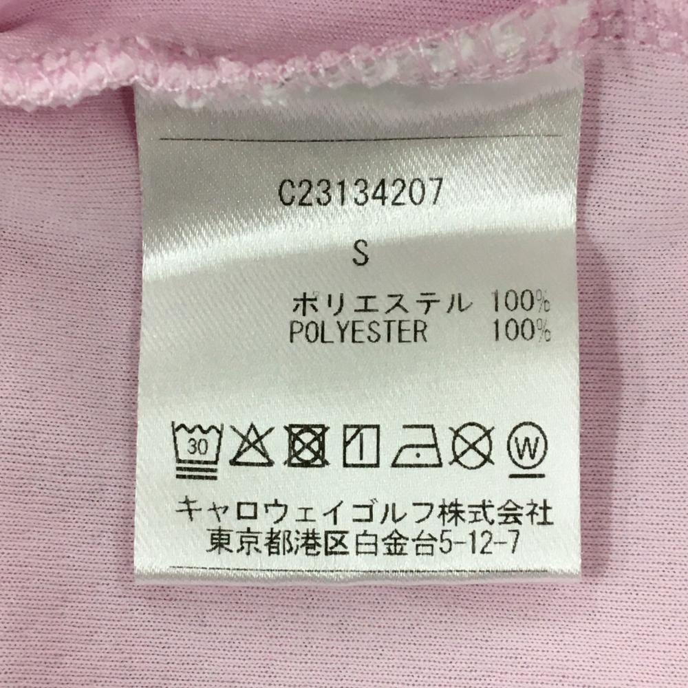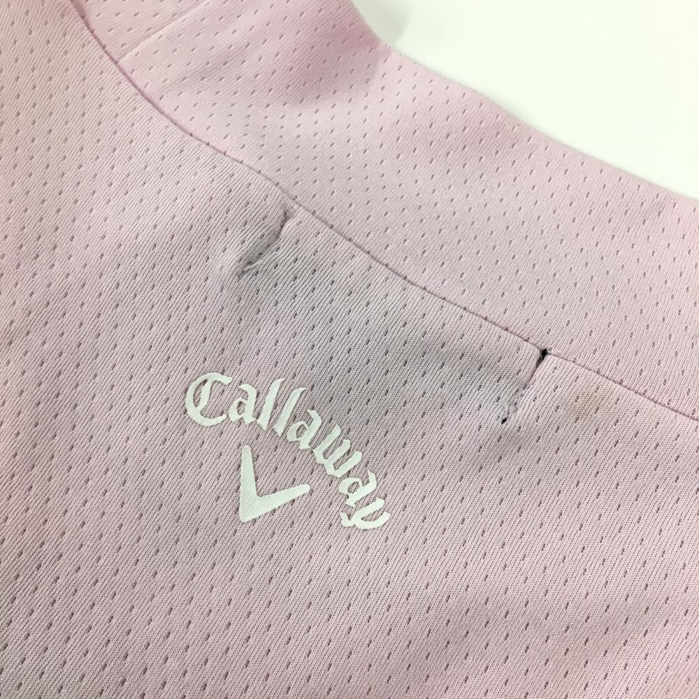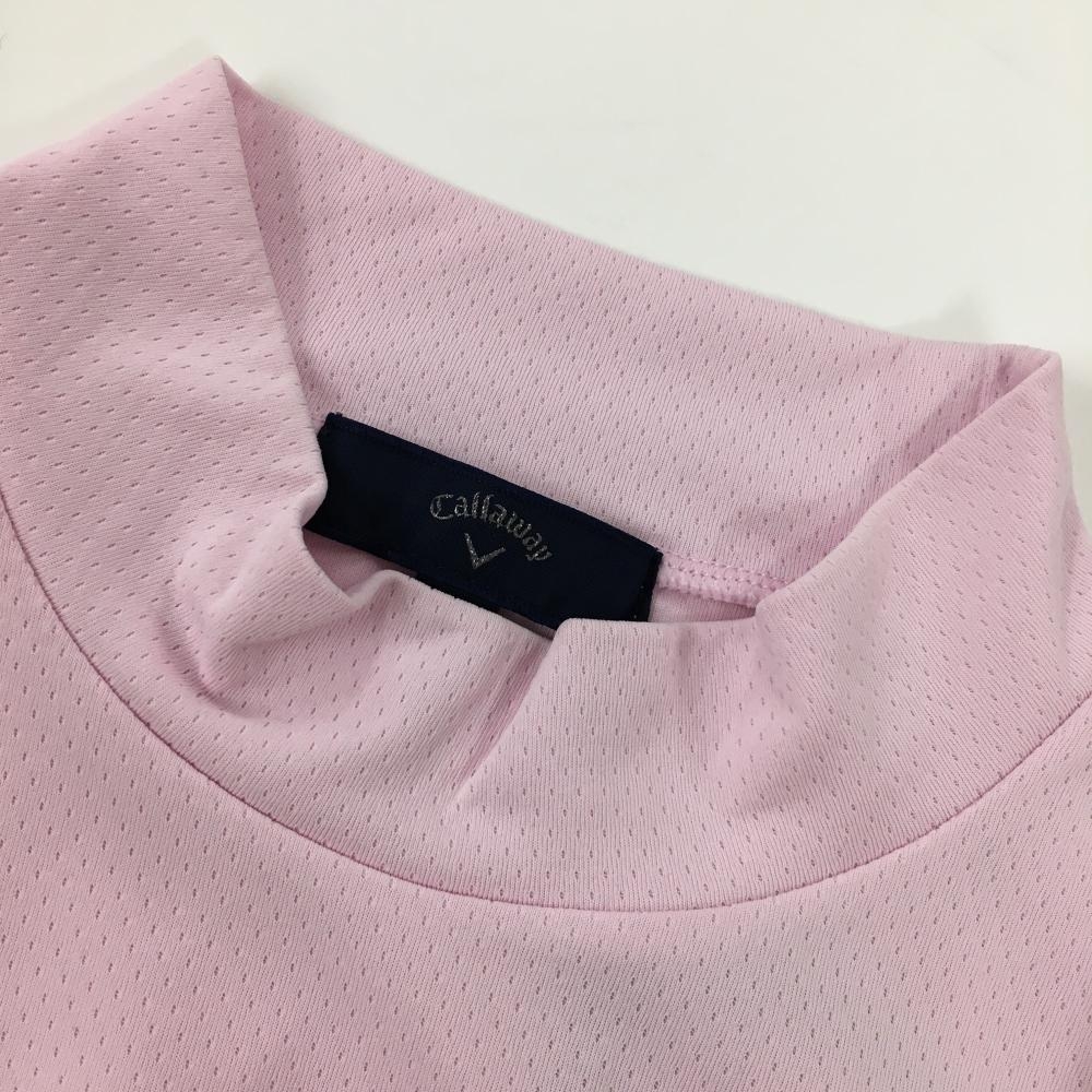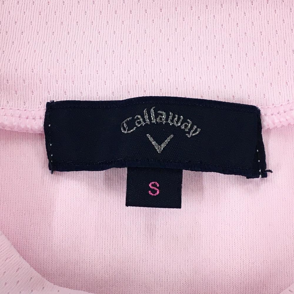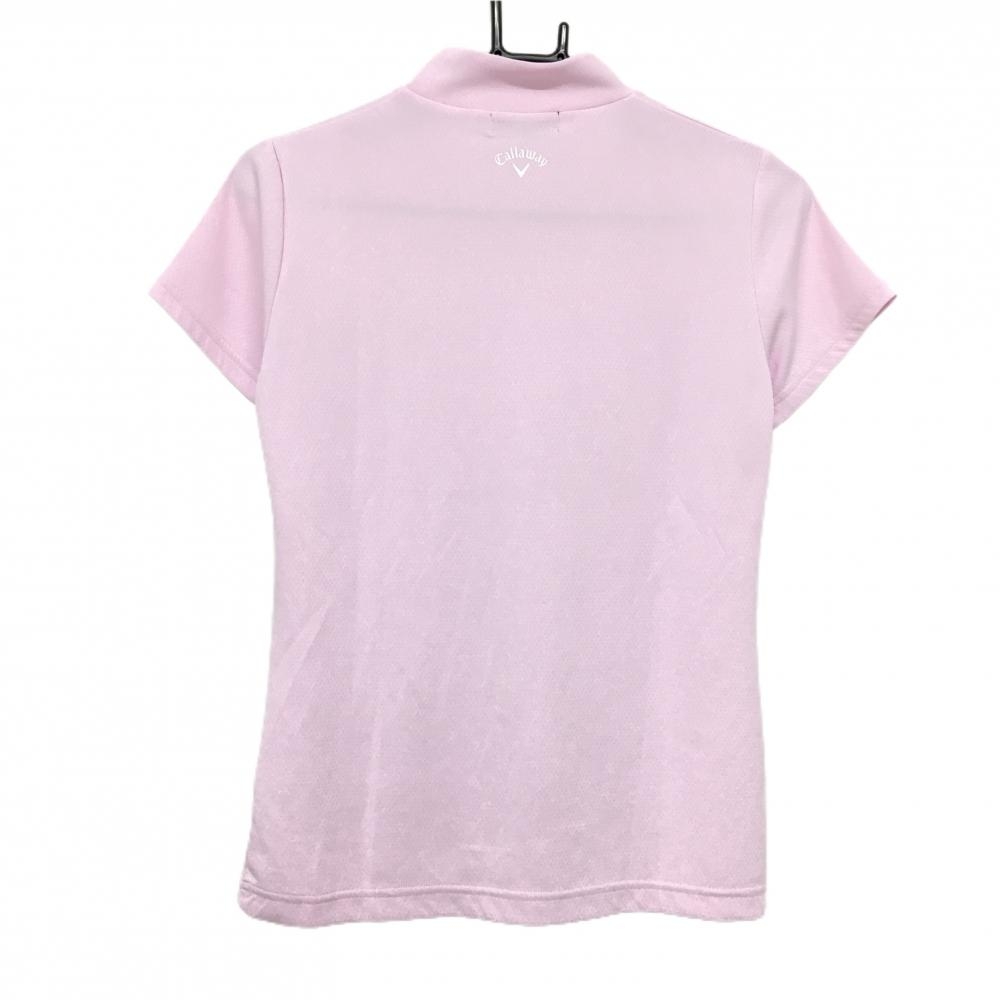 【美品】キャロウェイ 半袖ハイネックシャツ ピンク×白 ロゴプリント レディース S ゴルフウェア 2023年モデル Callaway