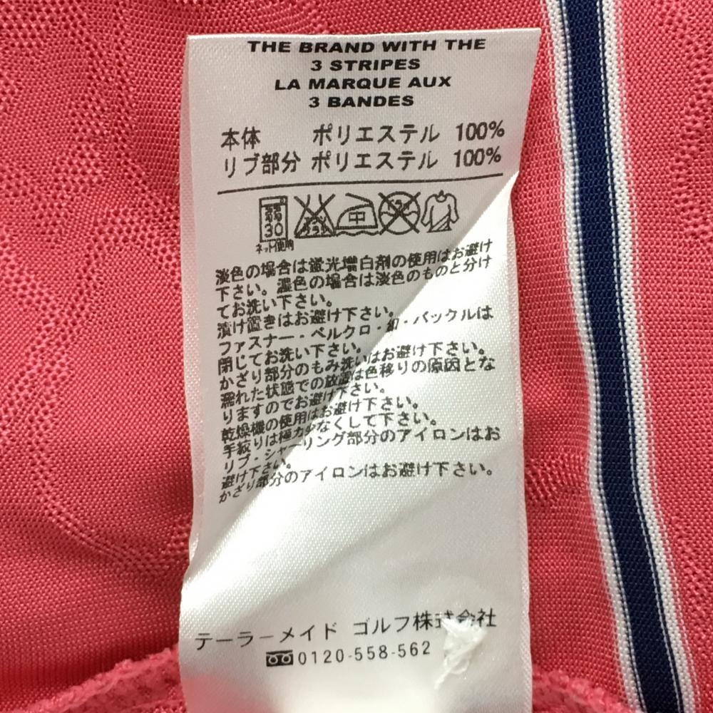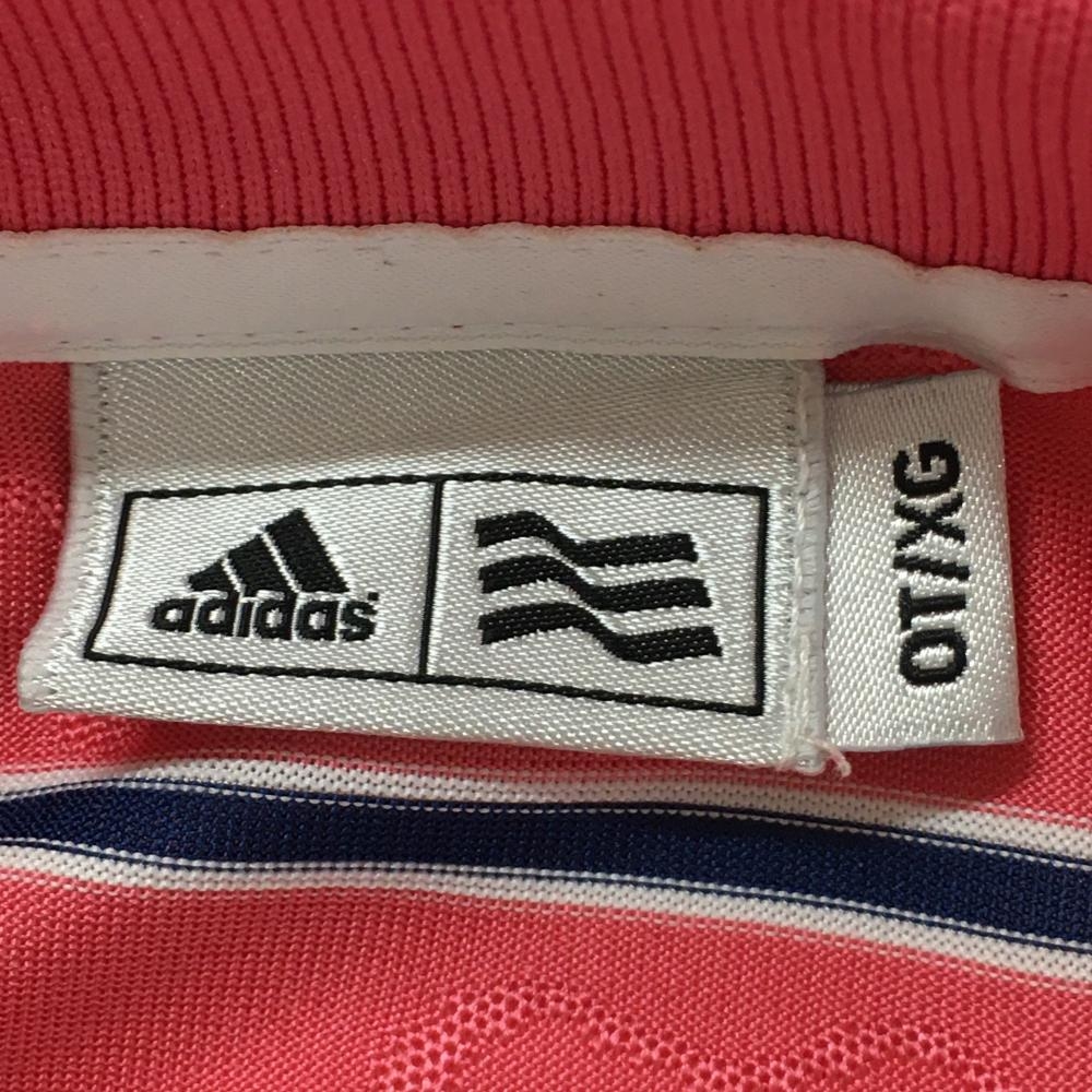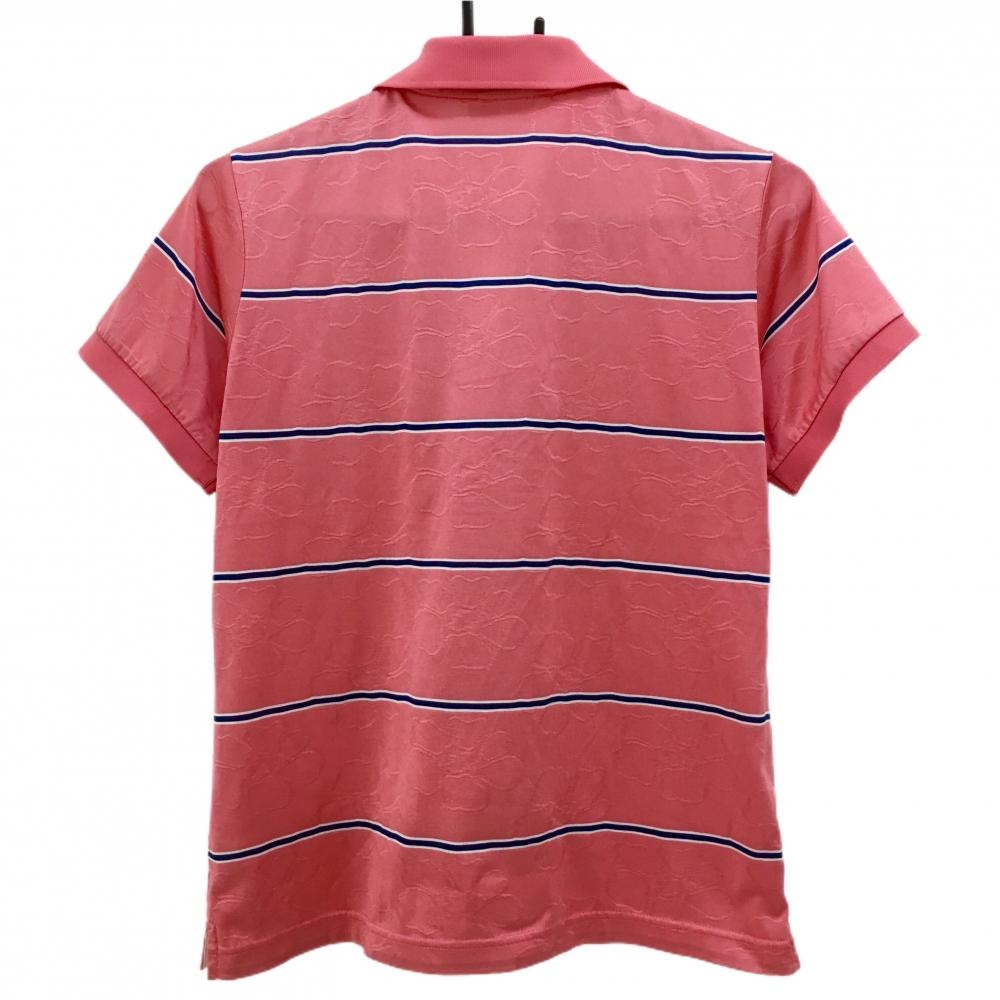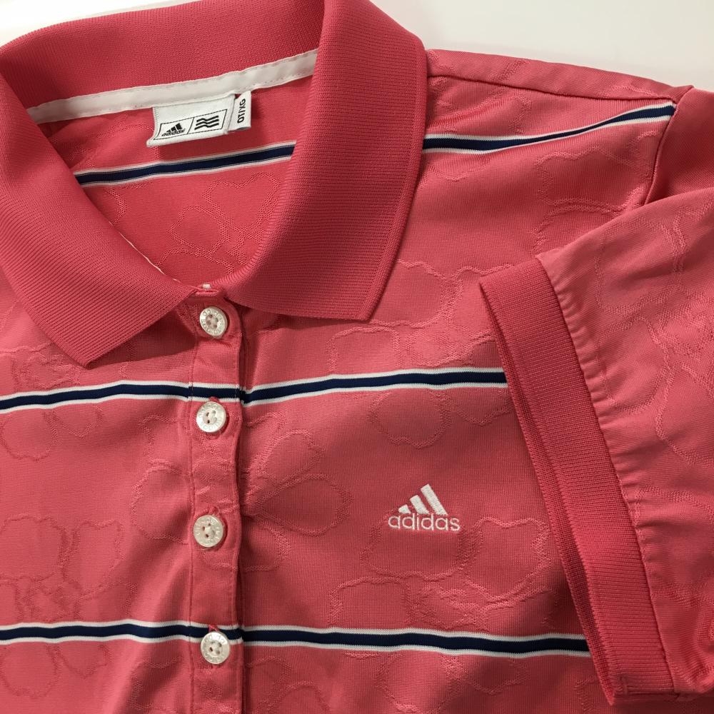 【超美品】アディダス 半袖ポロシャツ ピンク×ネイビー ボーダー 花柄織生地 レディース OT/XG ゴルフウェア adidas
