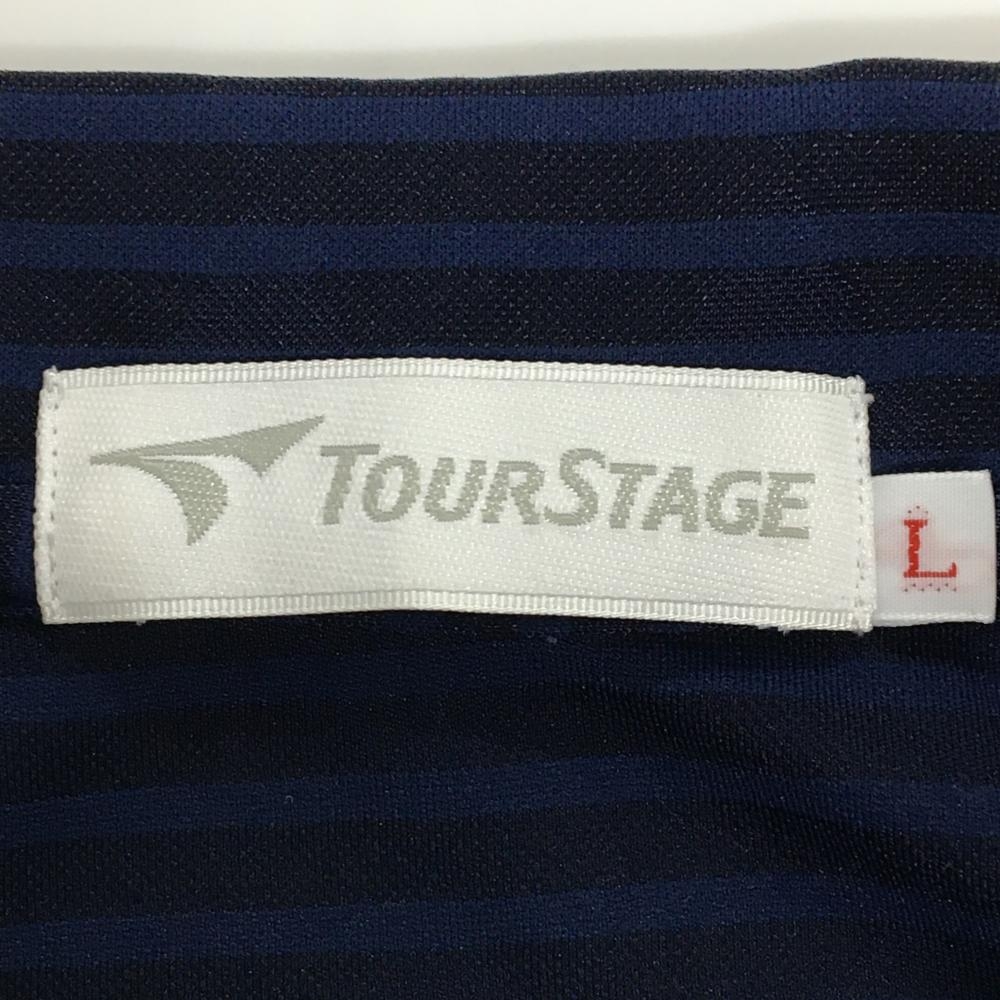 【超美品】ツアーステージ 半袖ポロシャツ ダークネイビー×ネイビー ボーダー レディース L ゴルフウェア TOURSTAGE