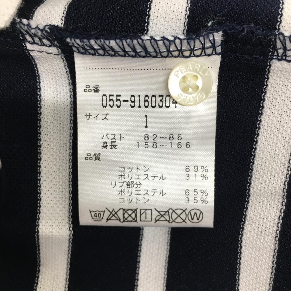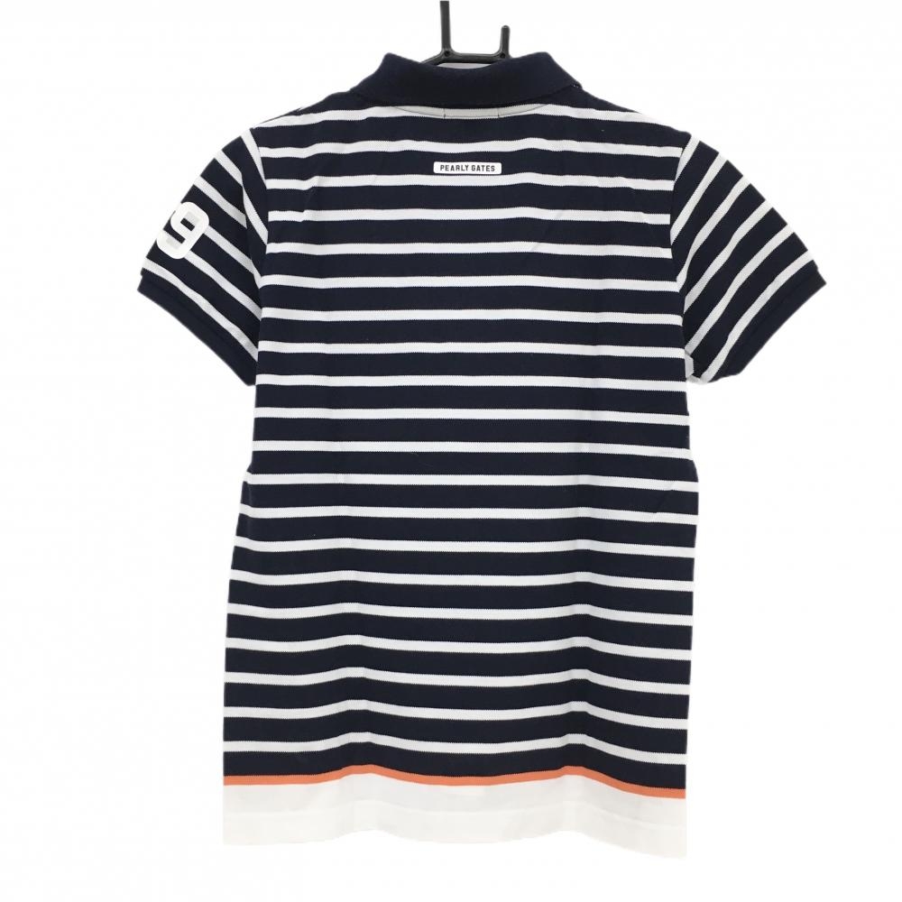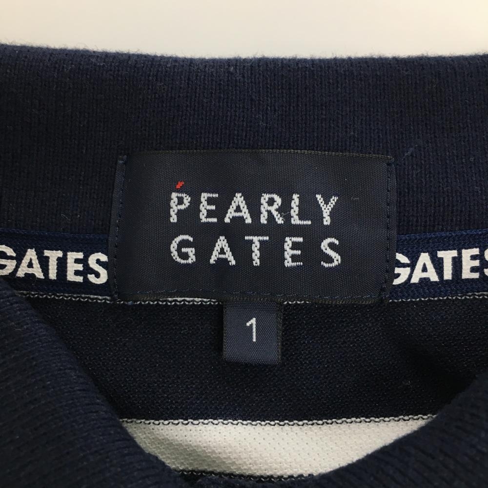 【超美品】パーリーゲイツ 半袖ポロシャツ ネイビー×白 ボーダー レディース 1(M) ゴルフウェア PEARLY GATES