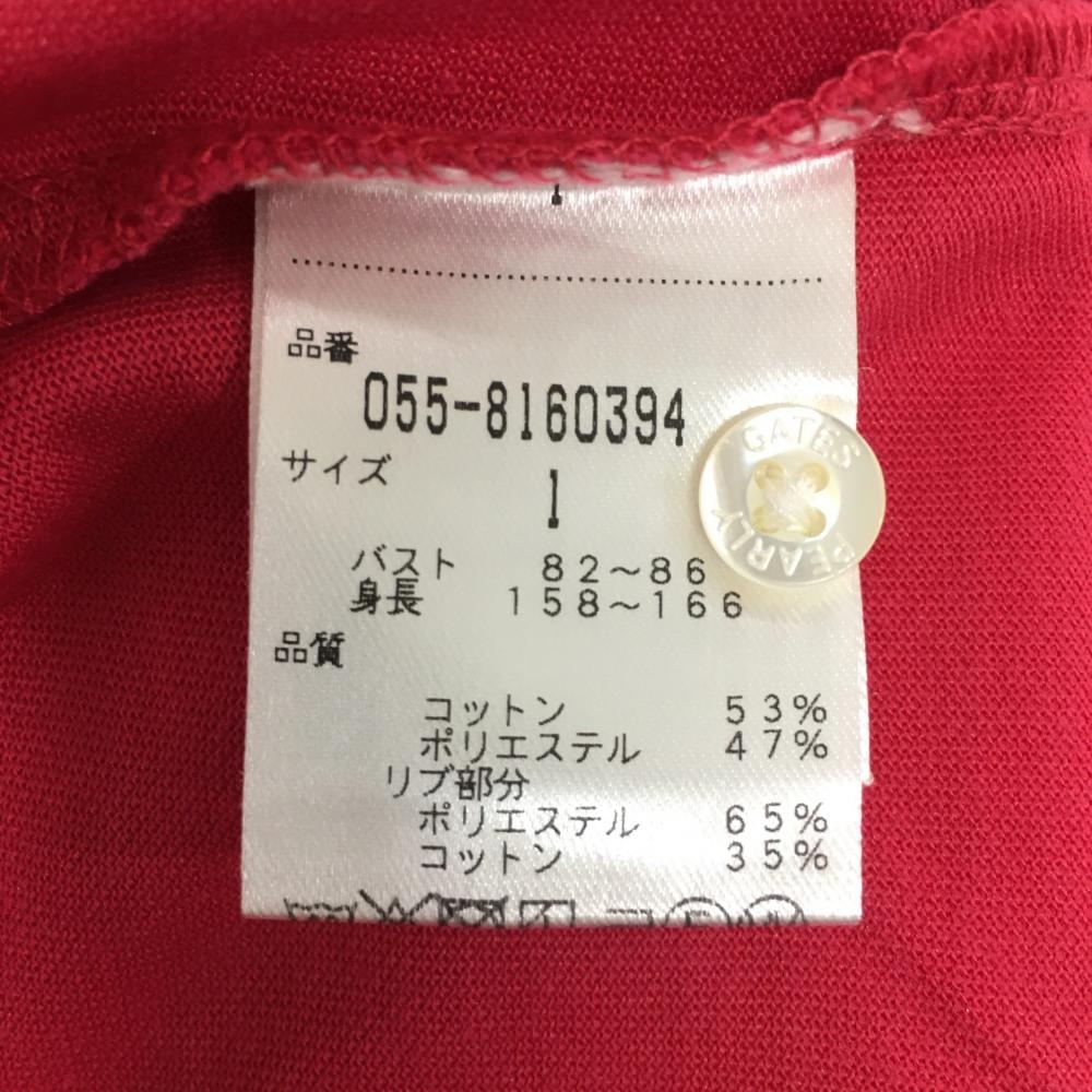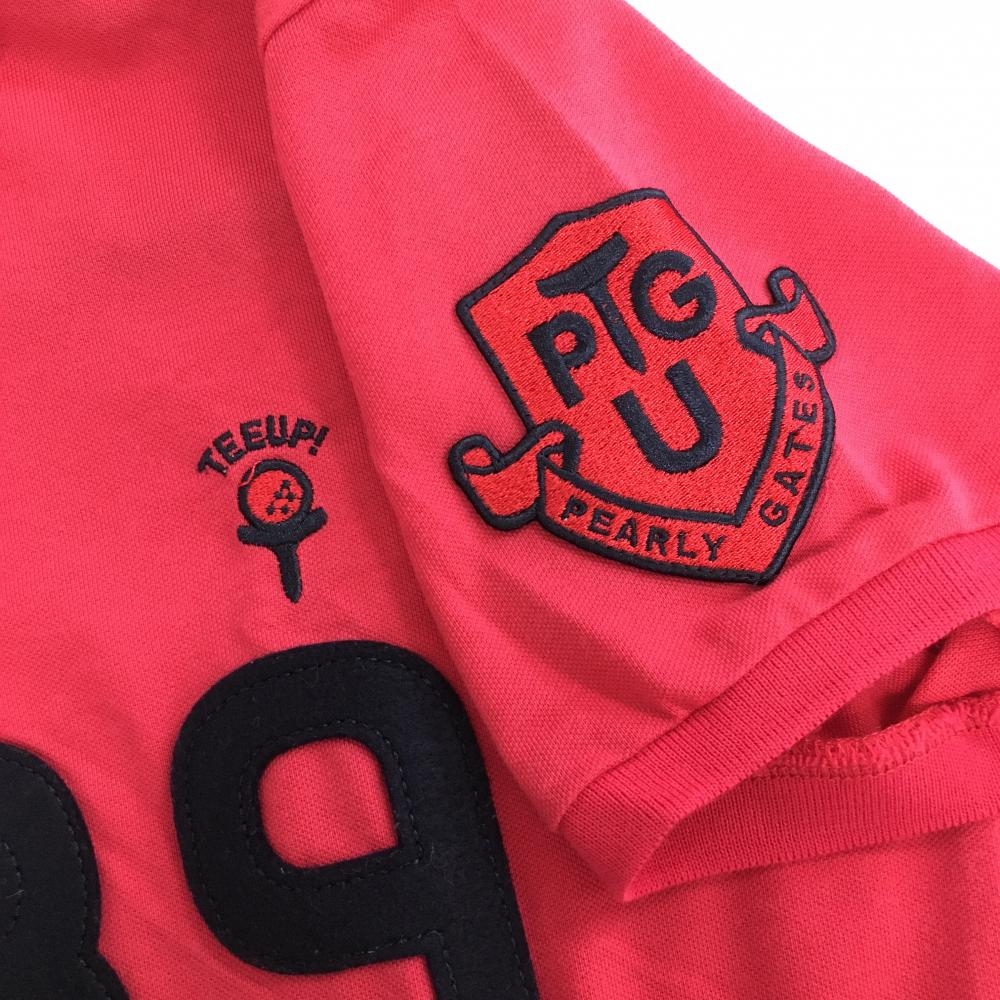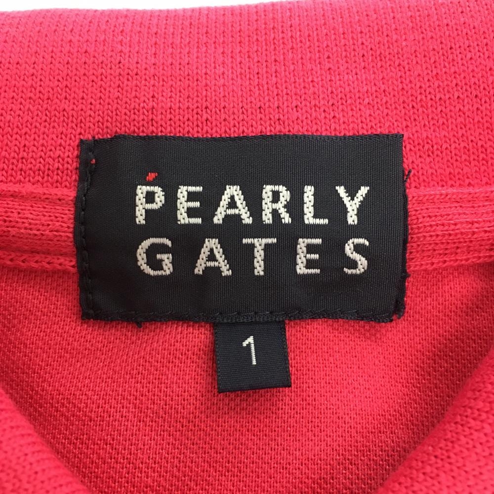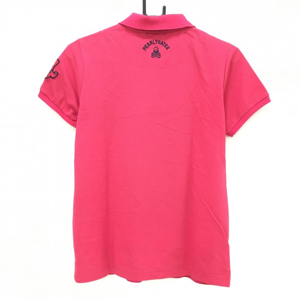 【超美品】パーリーゲイツ 半袖ポロシャツ ピンク×ネイビー フェルトワッペン ニコちゃん レディース 1(M) ゴルフウェア PEARLY GATES