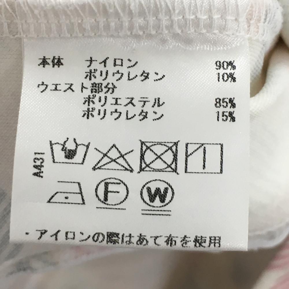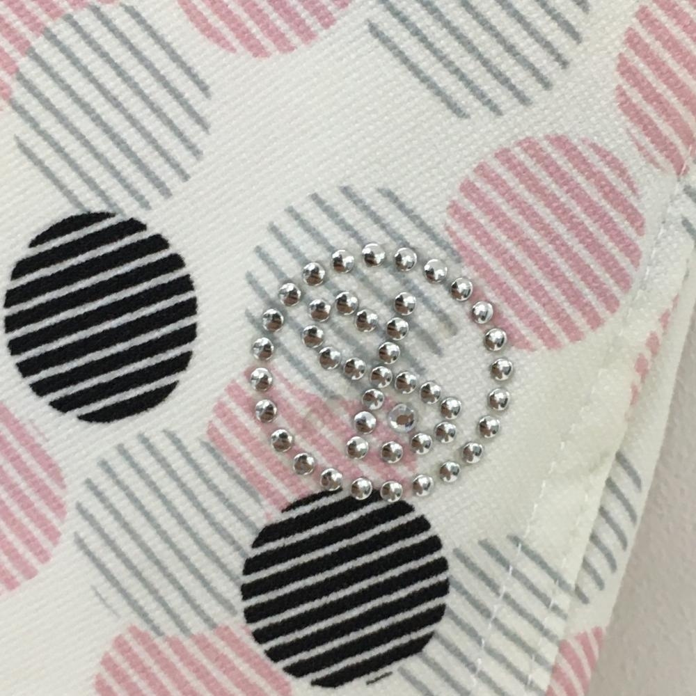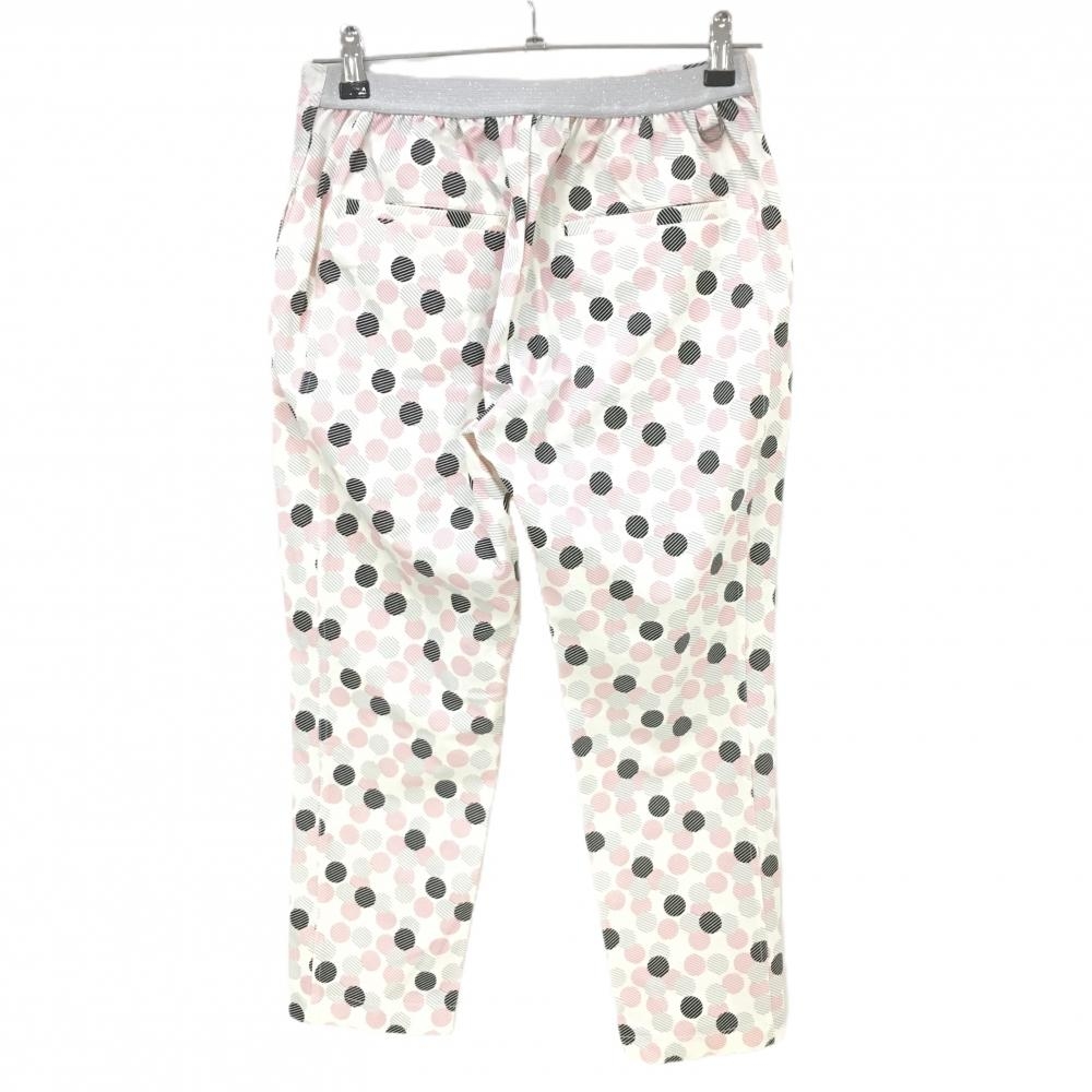 【超美品】クレールプリュス パンツ 白×ピンク ドット ウエスト一部ゴムラメ レディース 38 ゴルフウェア CLAIR+PLUS