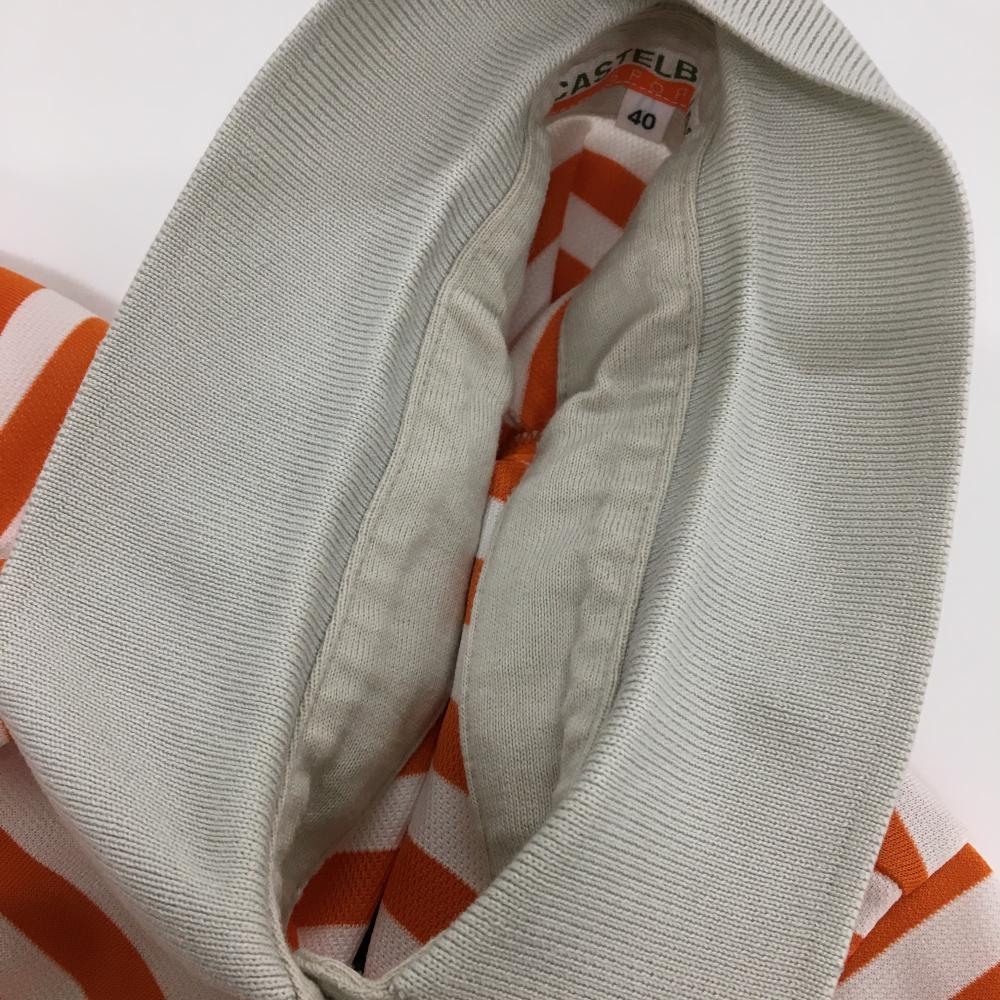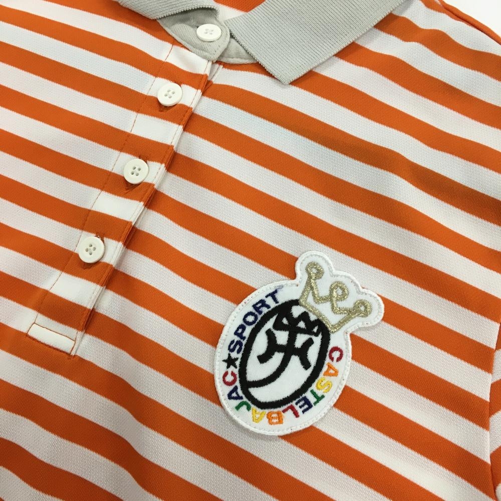 カステルバジャック 半袖ポロシャツ オレンジ×白 ボーダー レディース 40(M) ゴルフウェア CASTELBAJAC
