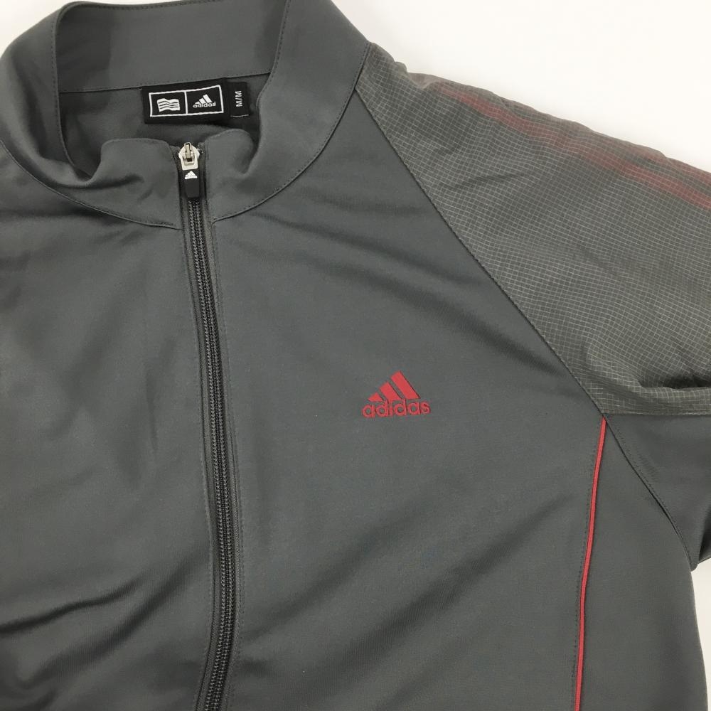 アディダス 異素材切替ジャケット ダークグレー×グレー 一部格子柄 ロゴ刺しゅう メンズ M/M ゴルフウェア adidas