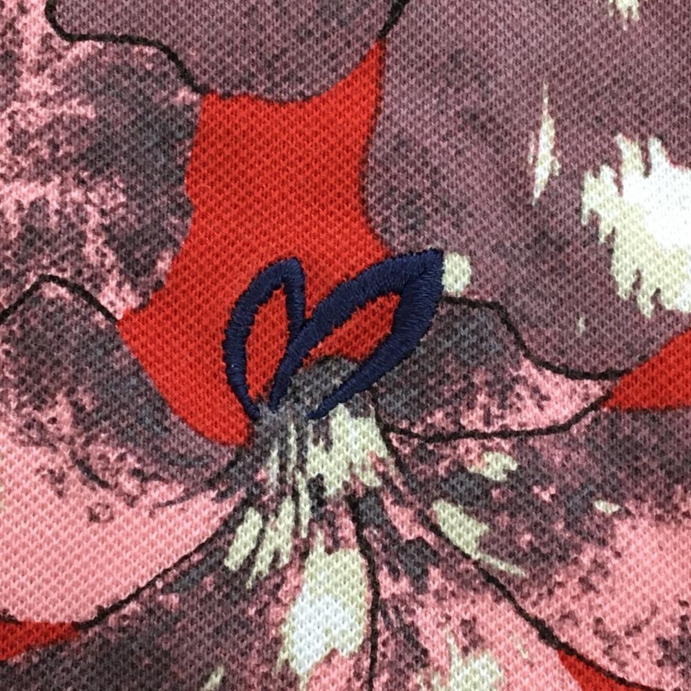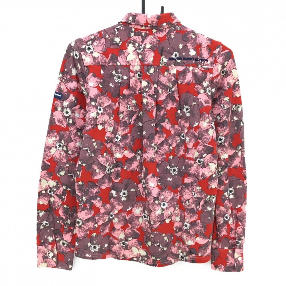 【美品】マスターバニー 長袖ポロシャツ レッド×ピンク 花柄 レディース 1(M) ゴルフウェア MASTER BUNNY EDITION