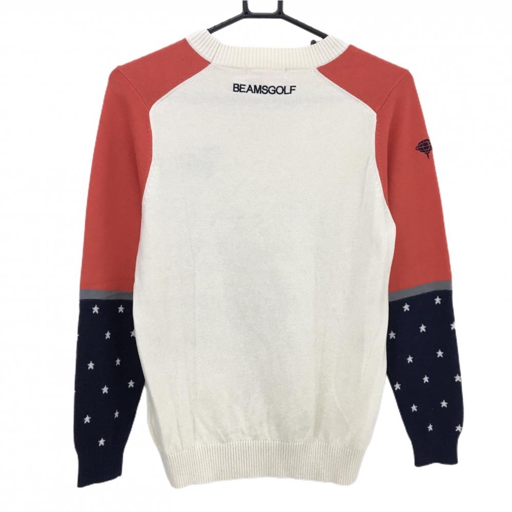 【美品】ビームスゴルフ セーター 白×レッド×ネイビー 袖一部星柄 ニット レディース L ゴルフウェア BEAMS GOLF