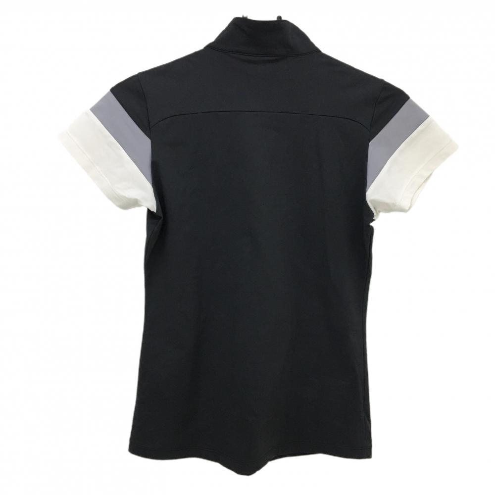 【美品】デサントゴルフ 半袖ハイネックシャツ 黒×グレー×白 バイカラー スナップボタン 中田英寿 レディース M ゴルフウェア DESCENTE