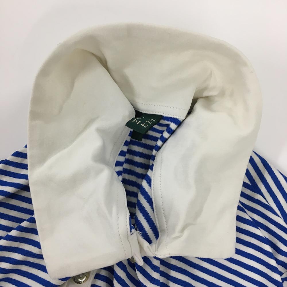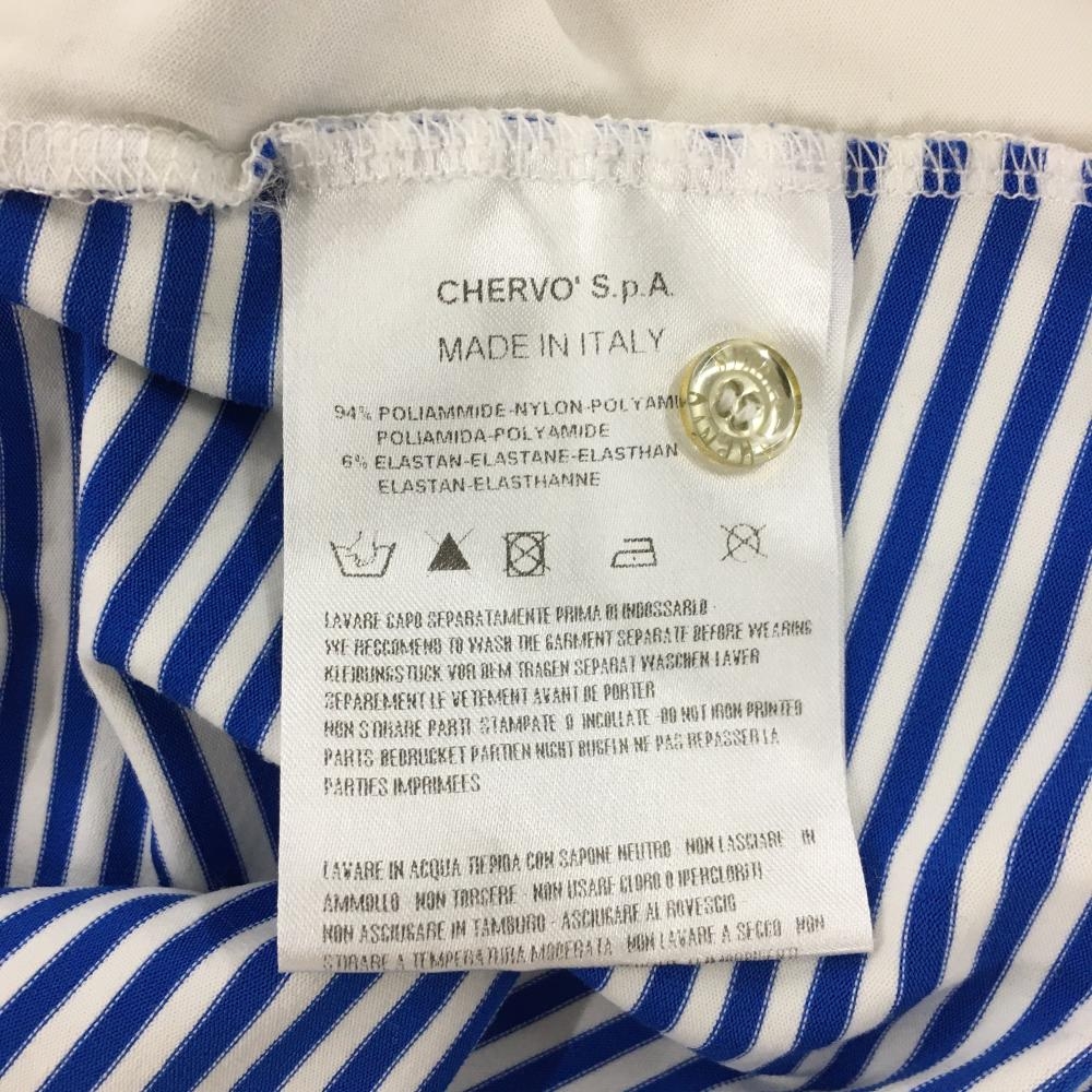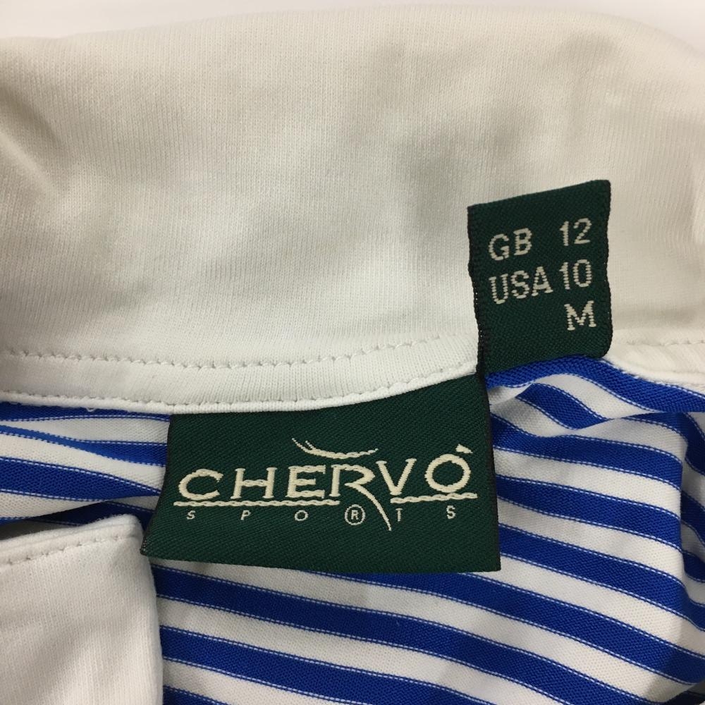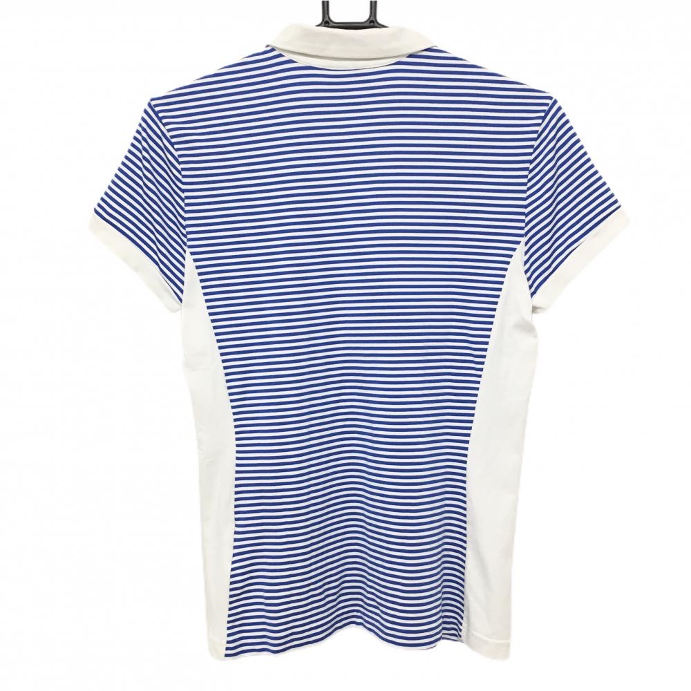 シェルボ 半袖ポロシャツ 白×ブルー ボーダー ラメ刺しゅう レディース USA-M ゴルフウェア CHERVO