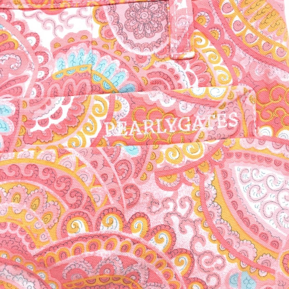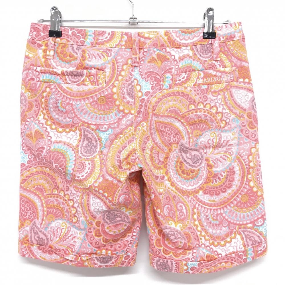 【美品】パーリーゲイツ ハーフパンツ ピンク×ライトブルー ペイズリー柄 ロゴワッペン レディース 1(M) ゴルフウェア PEARLY GATES