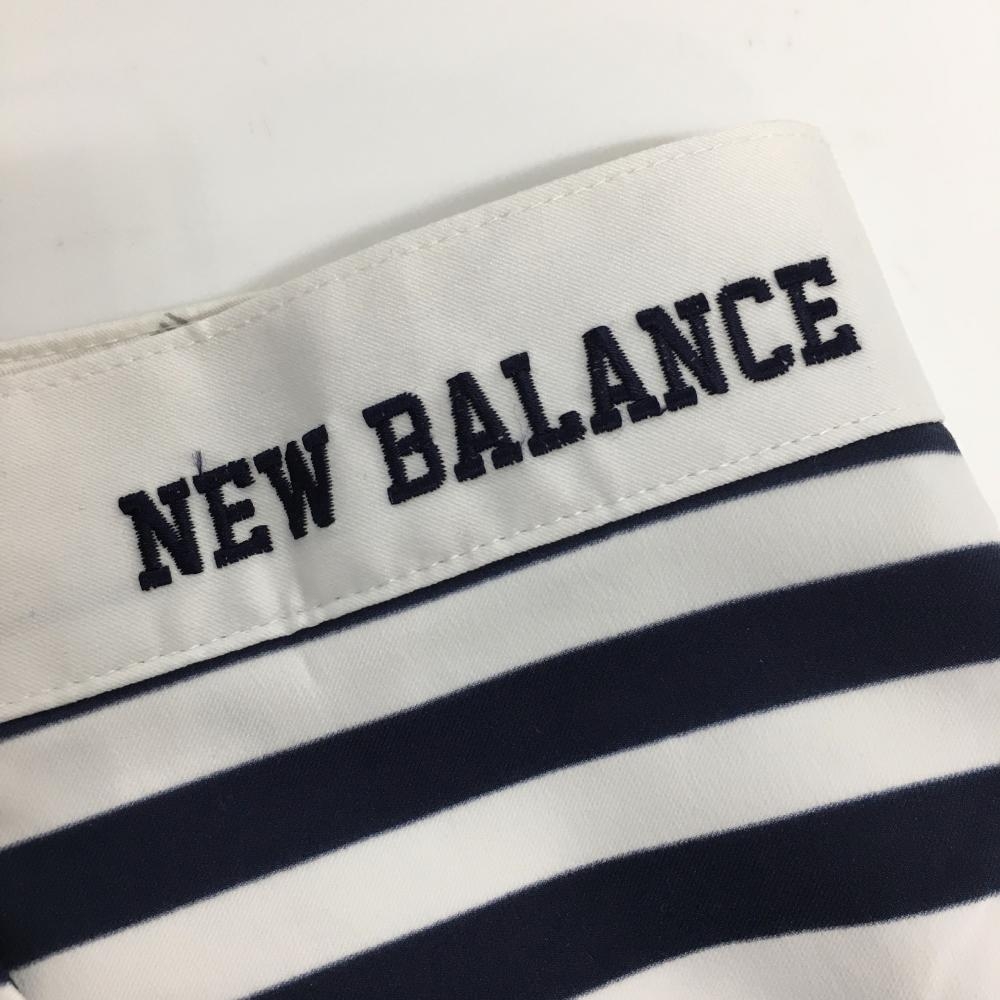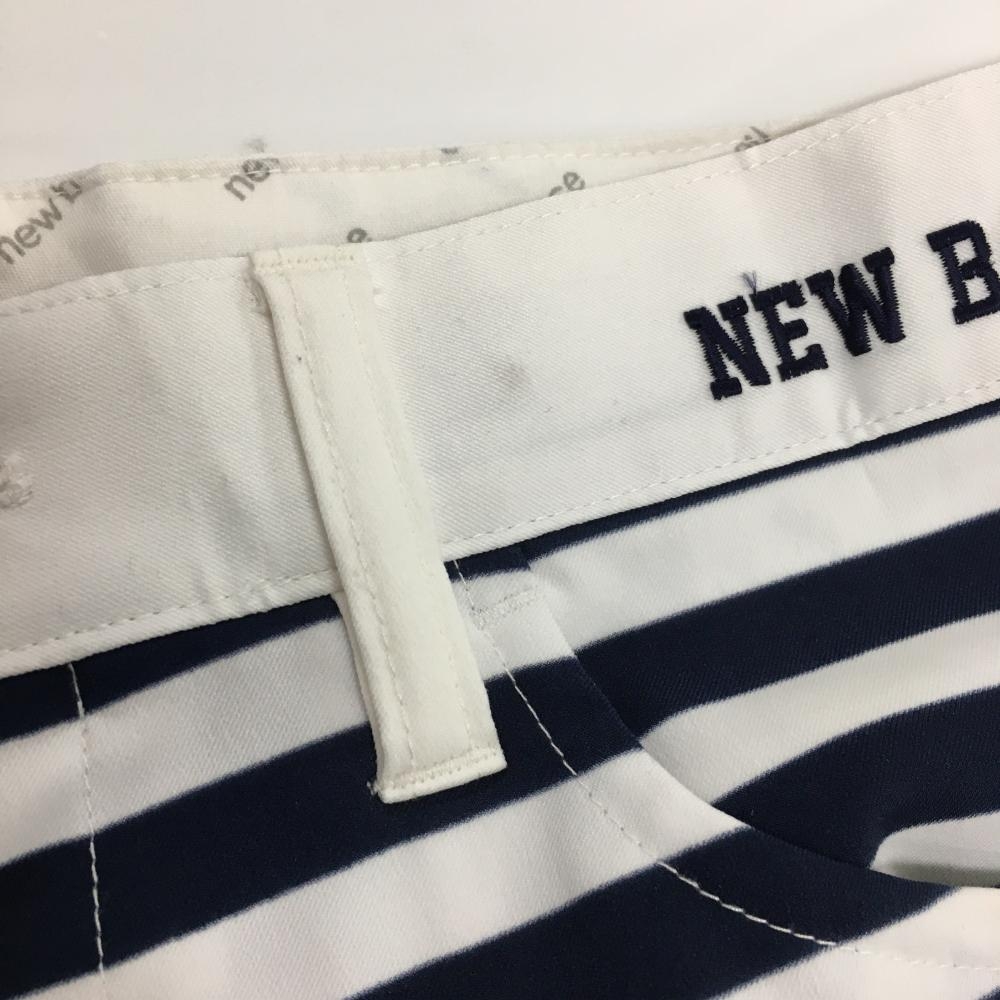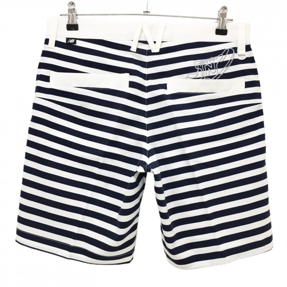 【美品】ニューバランス ハーフパンツ ネイビー×白 ボーダー シューズ刺しゅう メンズ 4(M) ゴルフウェア New Balance