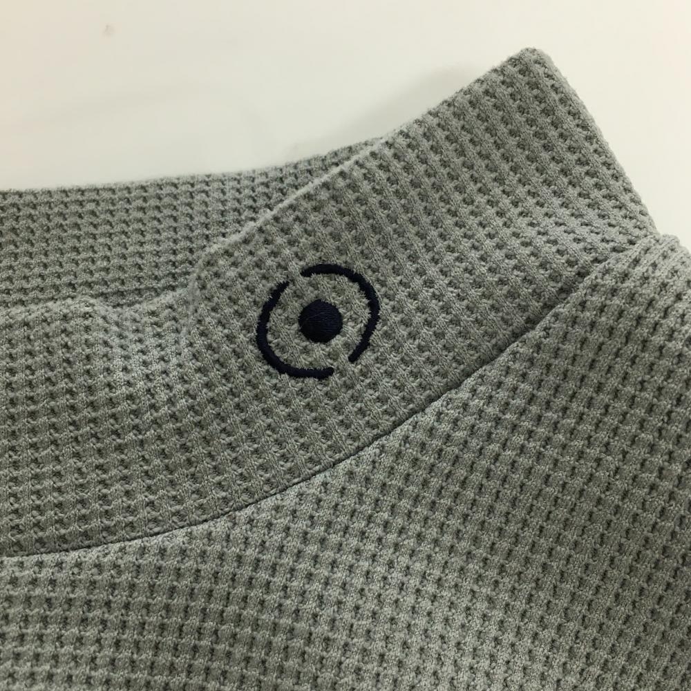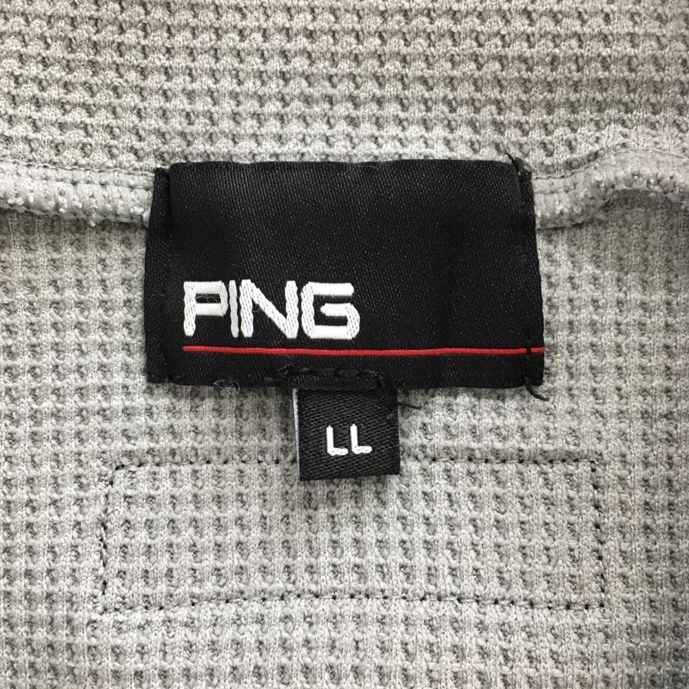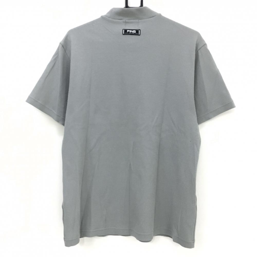【美品】ピン 半袖ハイネックシャツ グレー×ネイビー 凸凹織 ロゴ刺しゅう メンズ LL ゴルフウェア PING