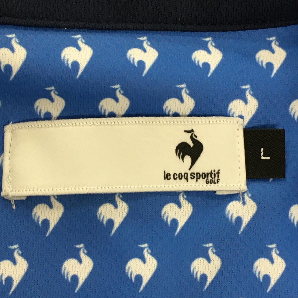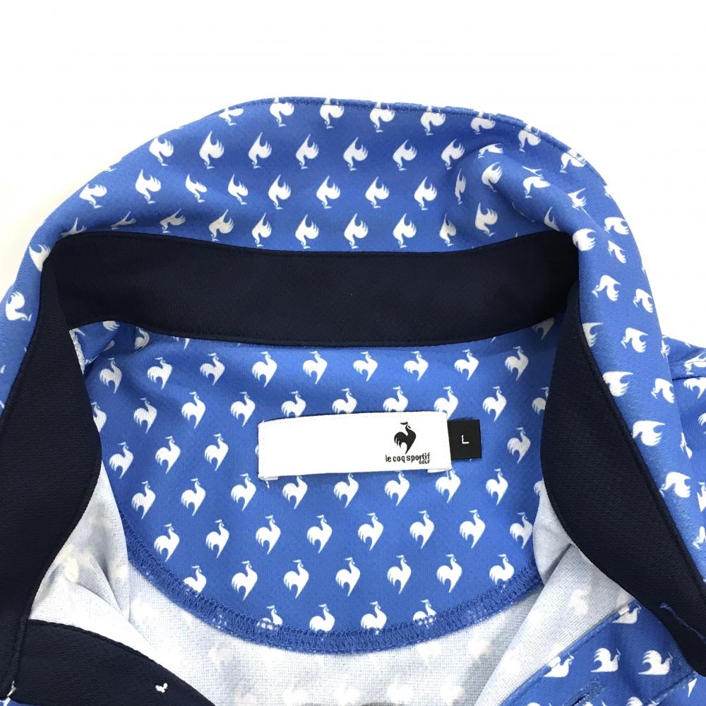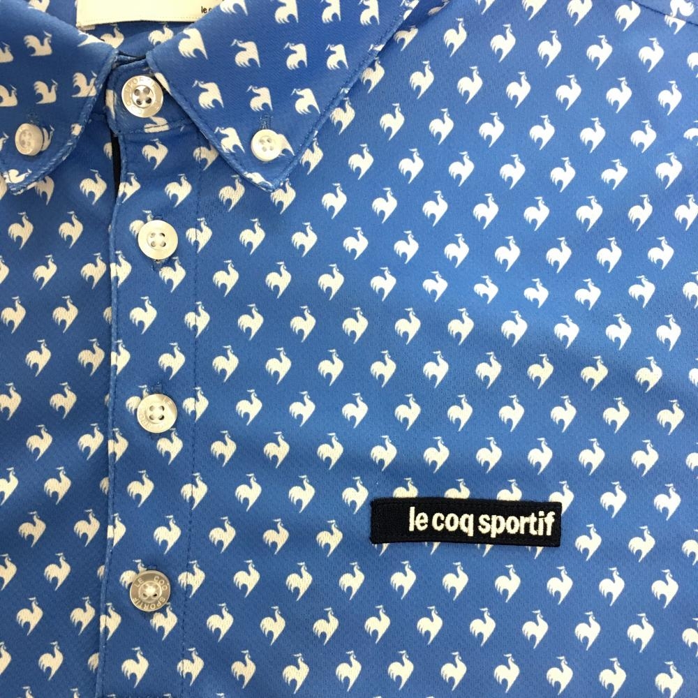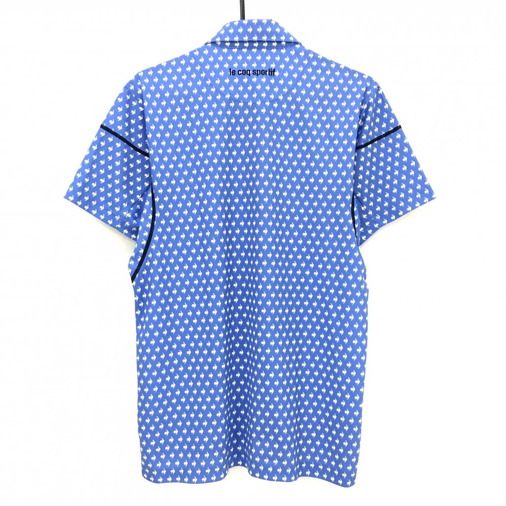 ルコックゴルフ 半袖ポロシャツ ライトブルー×白 ロゴ総柄 ボタンダウン メンズ L ゴルフウェア le coq sportif